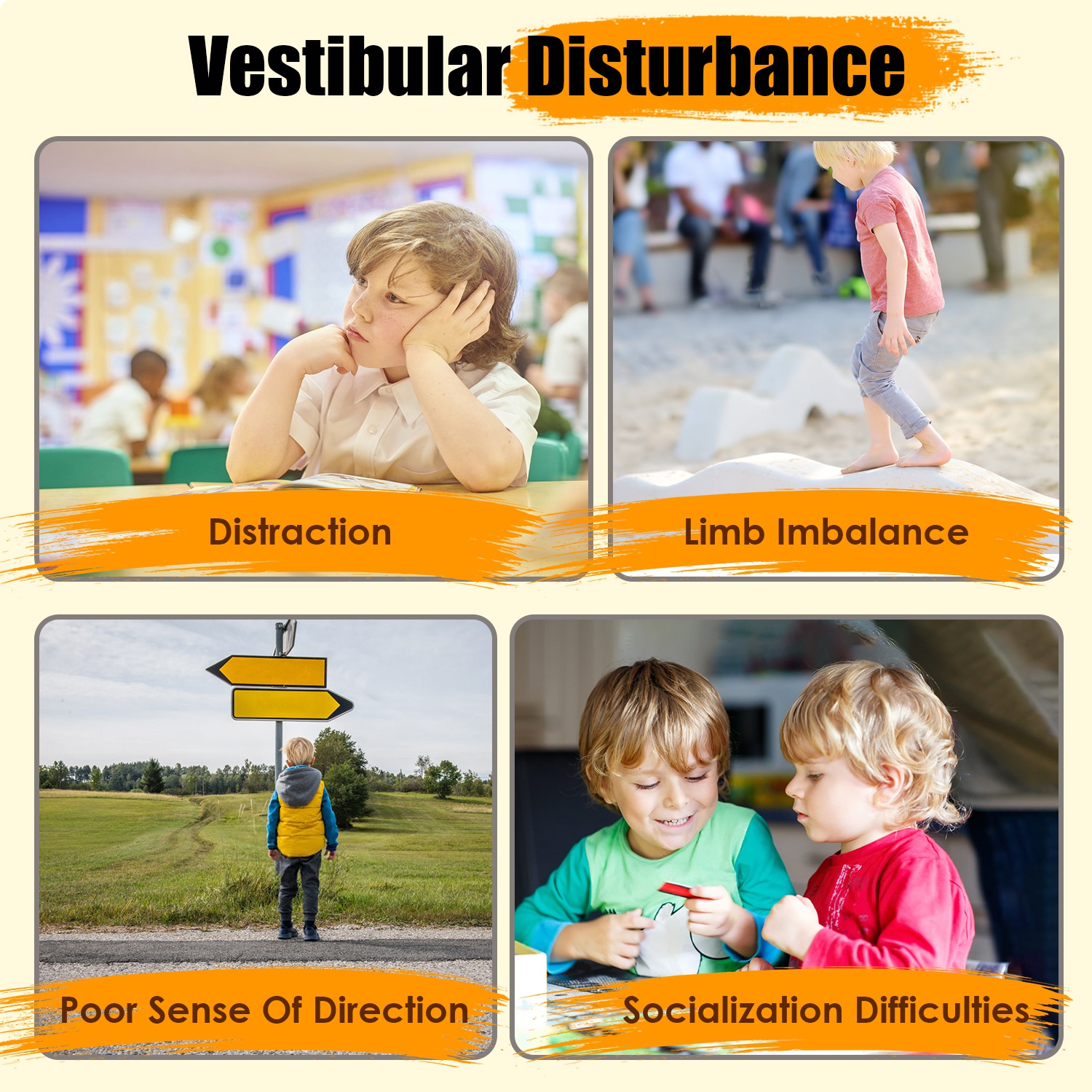 • *Boost Balance & Brain Development*:Our sensory swivel chair actively engages kids' vestibular system through dynamic spinning,enhancing balance coordination and stimulating bilateral brain growth. Perfect for high-energy children,it builds core strength while sharpening focus and spatial awareness—turning playtime into developmental wins.