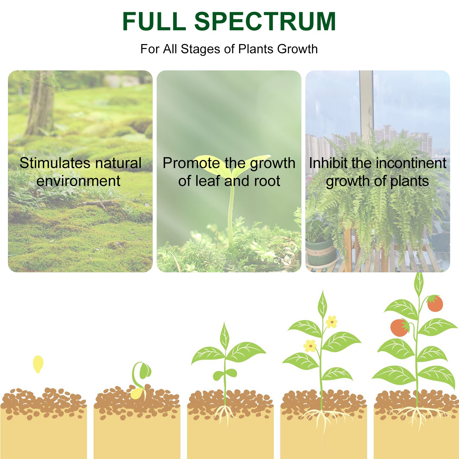 *Professional Plant Lighting*:Adopt 48Pcs LED beads,our high-efficiency growing light emits 6000K cold white light,4500K warm white light,3000K warm yellow light,different color temperatures help to germinate,bloom and enhance photosynthesis for better results and inhibit the incontinent growth of plants to form dwarf. Full spectrum illumination stimulates natural environment for small indoor plants’ entire growth period.
