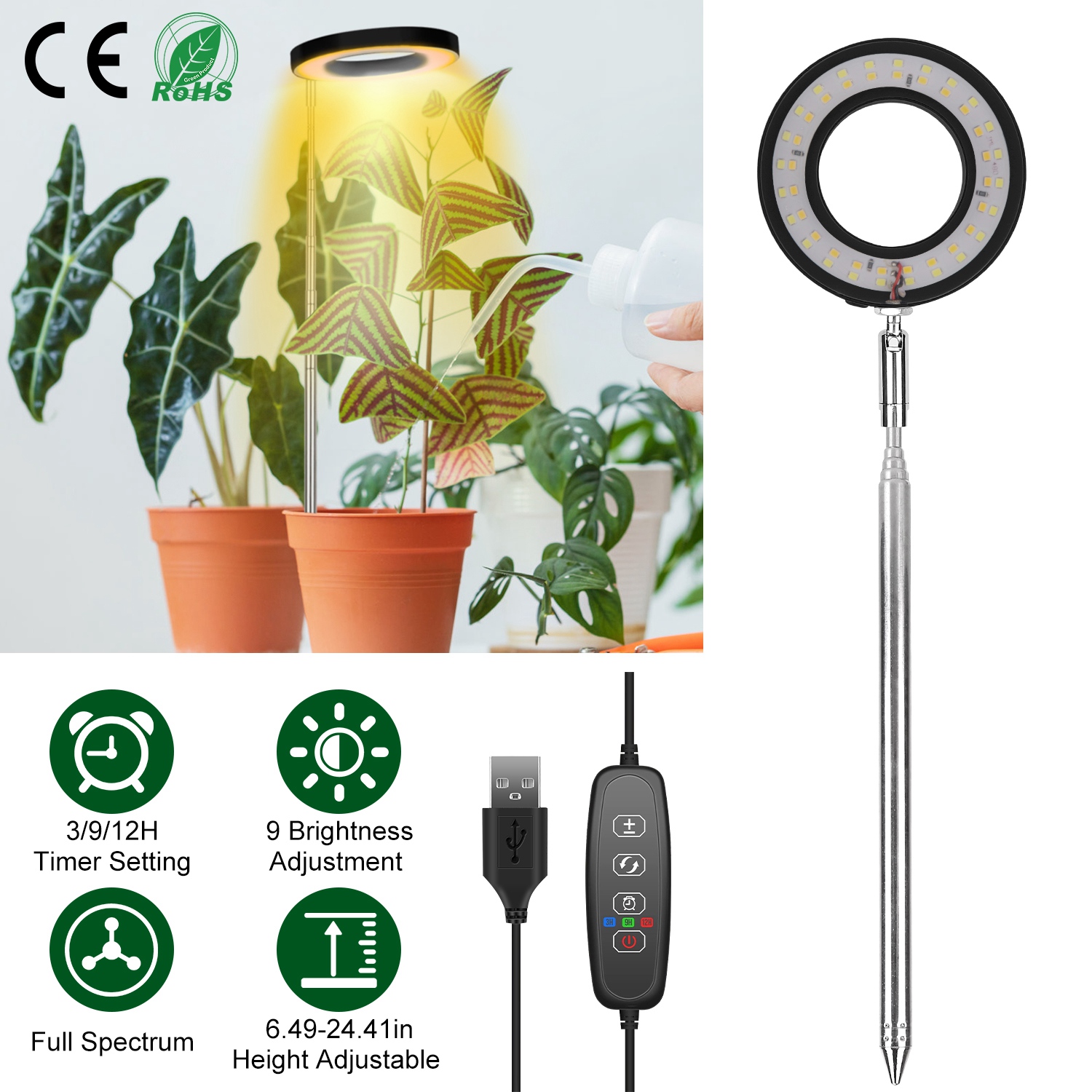 1Pc Plant Grow Light LED Full Spectrum Circle Growing Lamp With 3-9-12Hours Auto Timer Setting 9 Dimmable Brightness Height Adjustable For Indoor Plants