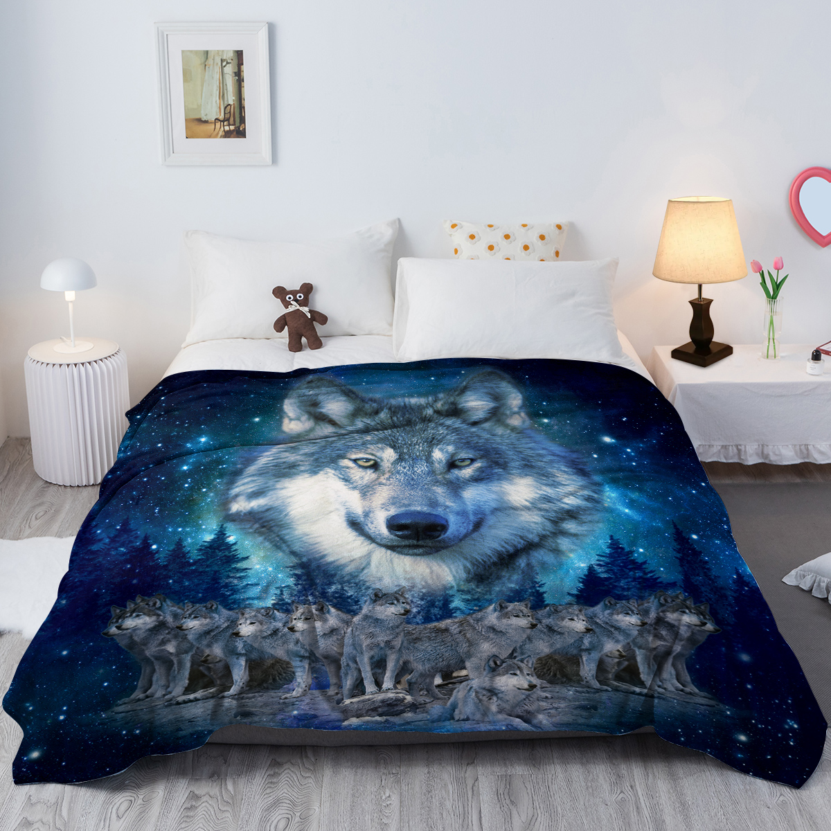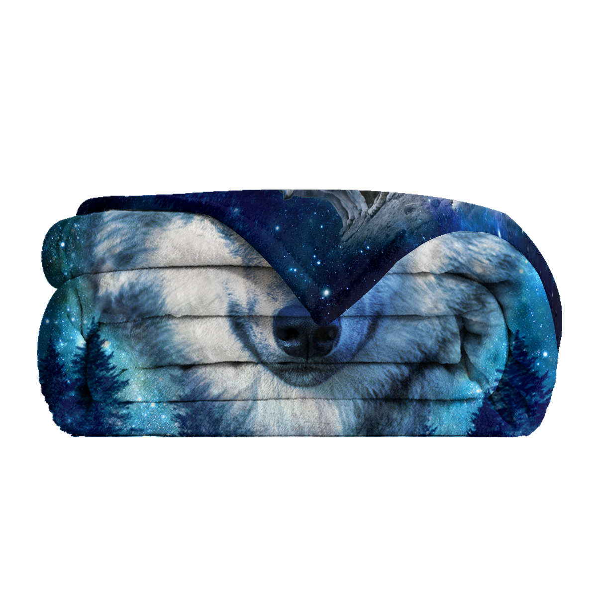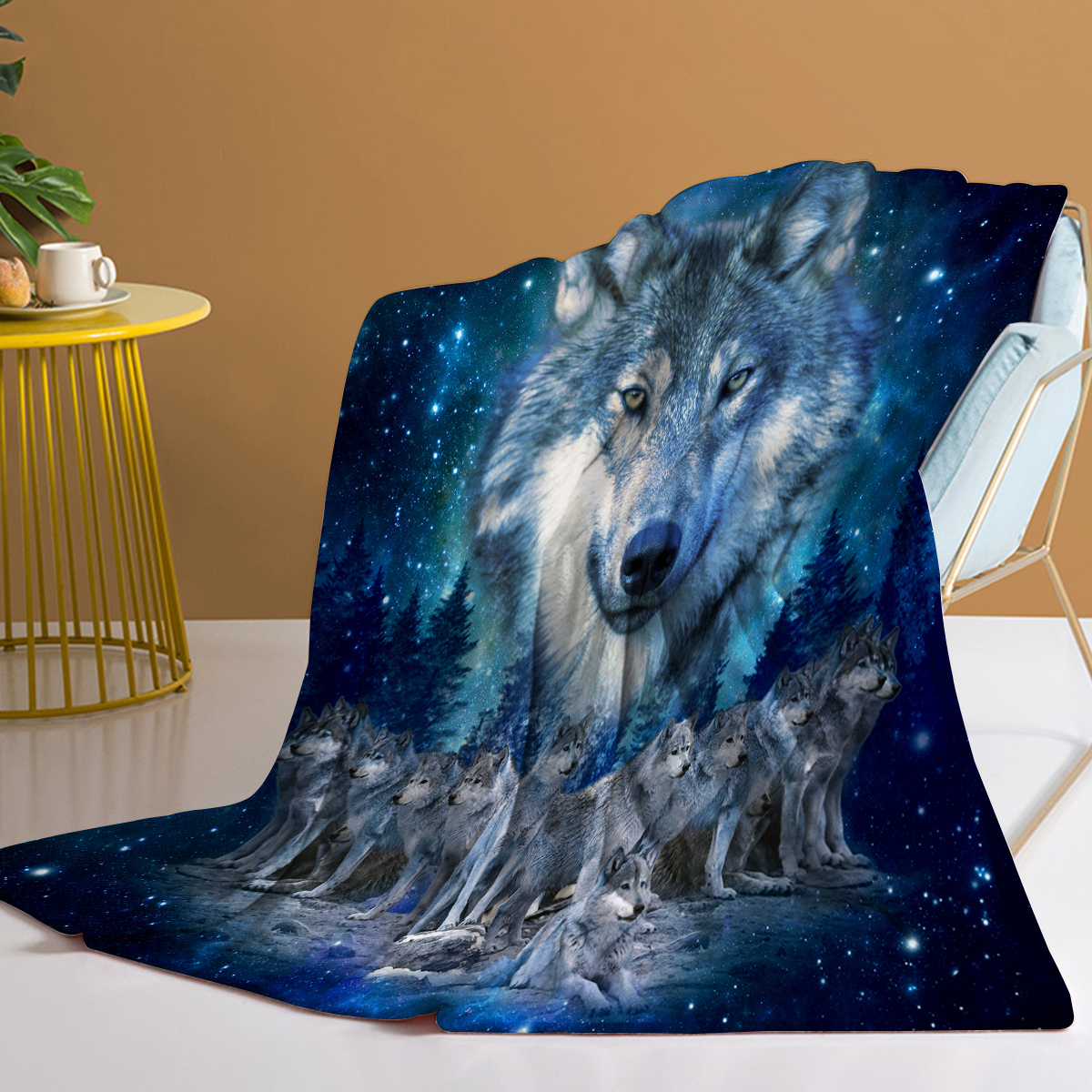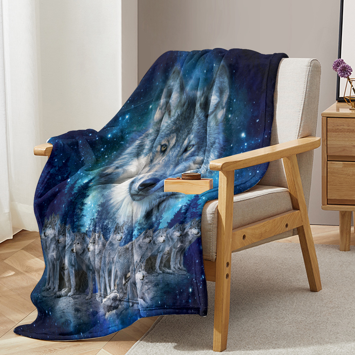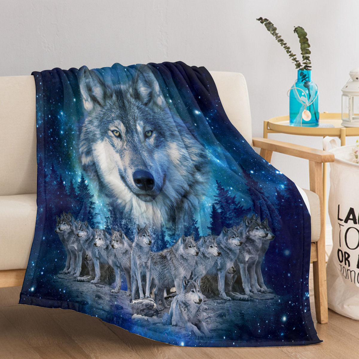1pc Starry Wolf Pack Soft Printed Flannel Sofa Blanket Comfortable And Warm Home Use Suitable For Bed Sofa Camping And Multi Scene Seasonal Use