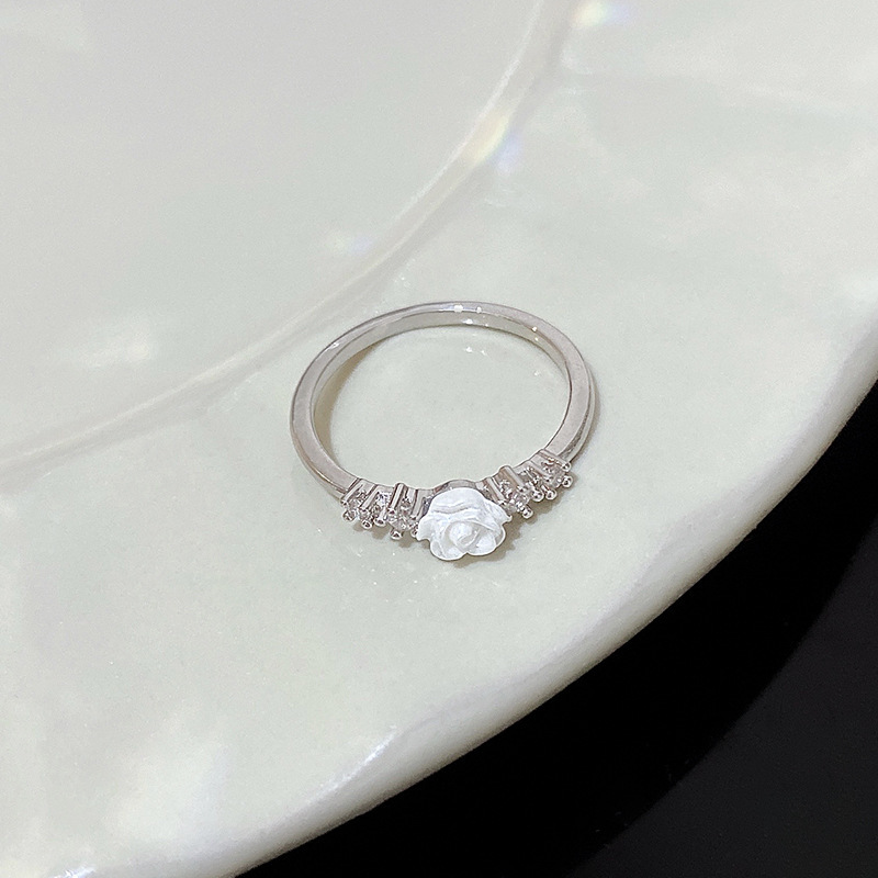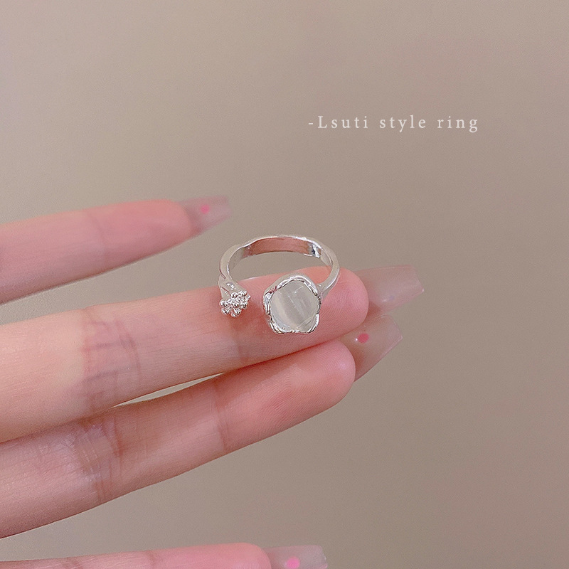 1PCS Ins Style Silver Zircon Ring For Women, Light Luxury Minimalist Design, Adjustable Open Band, Versatile Elegant Jewelry
