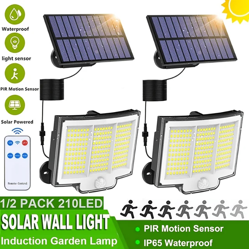 1pcs Solar Light Outdoor, 210LED Super Bright Motion Sensor Solar Strong Power LED Garden Wall Lamp