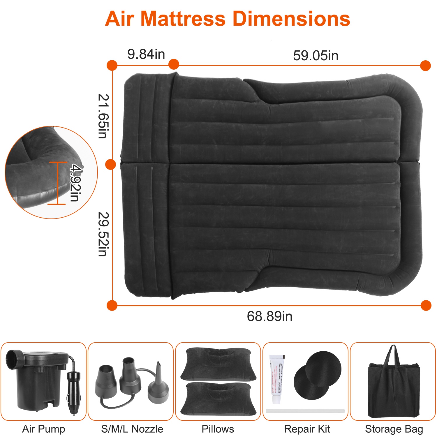 •  Product Type: Car Travel Inflatable Air Mattress