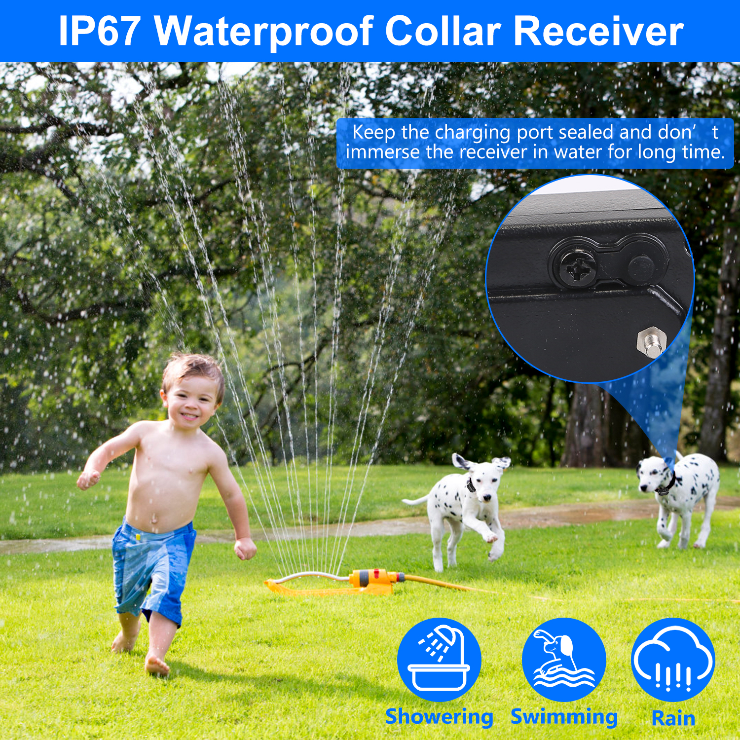 *Adjustable Collar & Waterproof Receiver*:With an adjustable neck circumference of 5.5-23.6in,it’s suitable for small,medium,and large dogs weighing 4lbs+. One transmitter can pair with 3 collar receivers simultaneously. The IP67 waterproof receiver can work normally when your dog swims or runs in the rain. Make sure that the charging port is well-sealed before the dog runs into water.