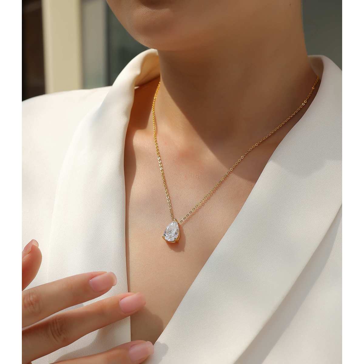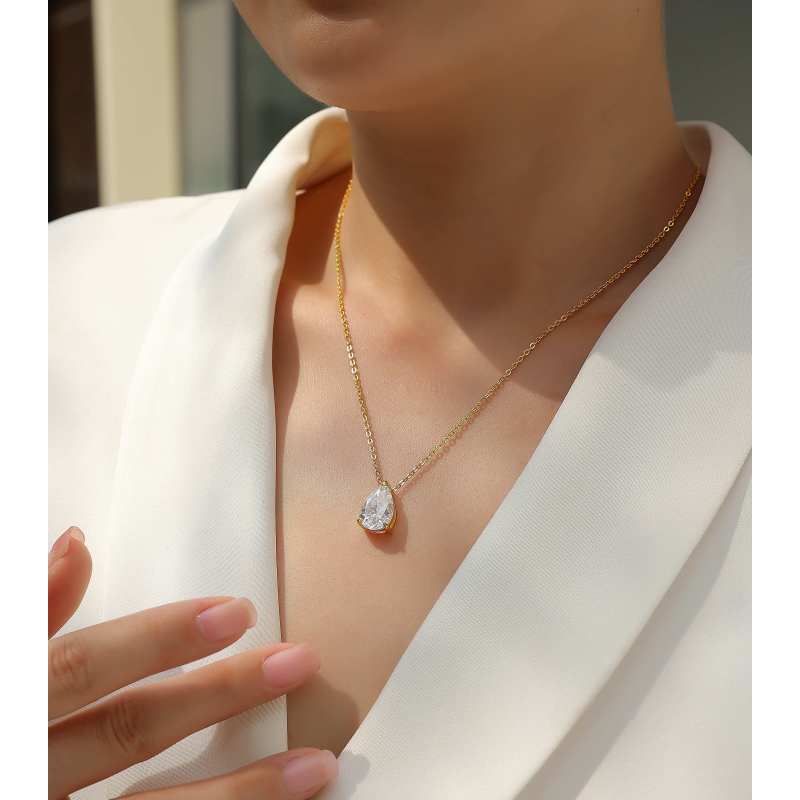1Under The Moon - A Fashionable And Trendy Diamond Pendant Necklace Set With Pear-shaped Moissanite S925 Sterling Silver And Gold Plating Prohibit TikTok sales