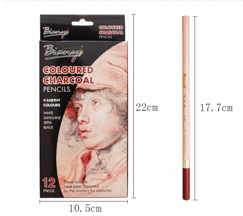 Color: 2 X White Charcoal Pencils, 2 X Red chalk Charcoal pencils, 2 X SepI charcoal pencils, 6 X Black Charcoal pencils.
