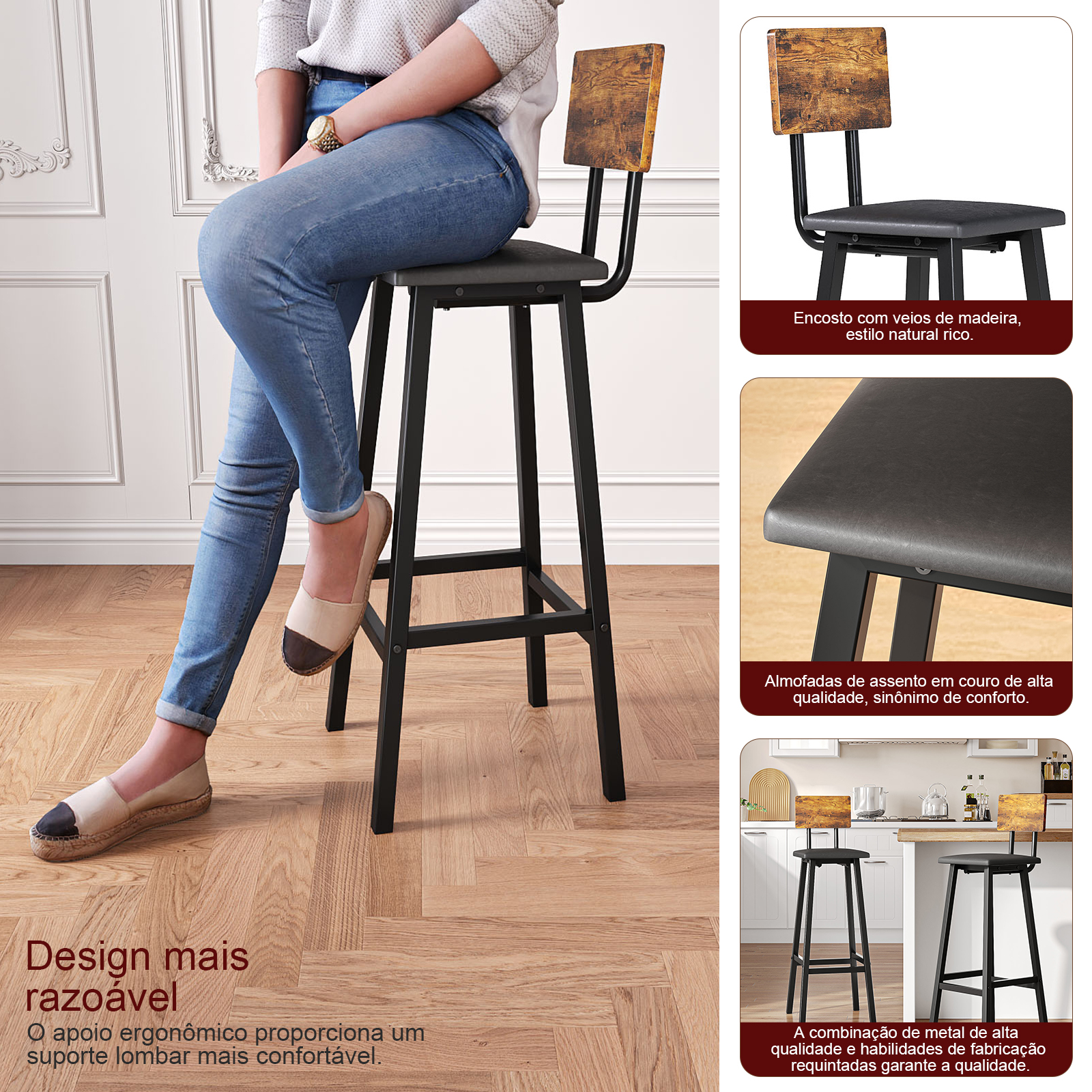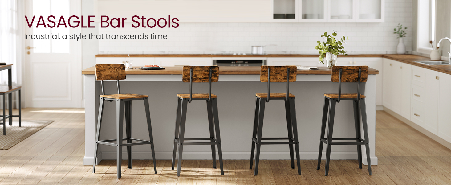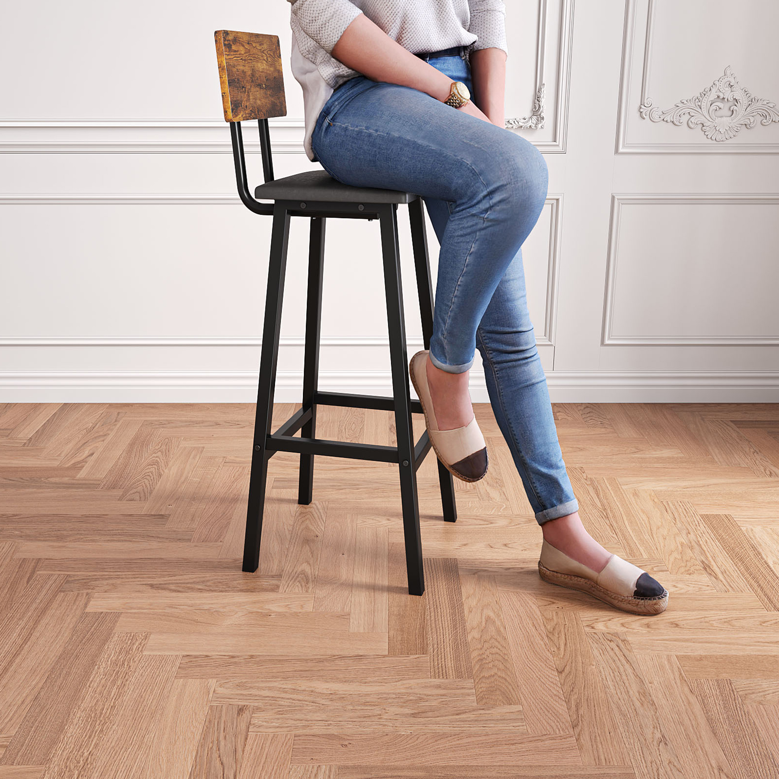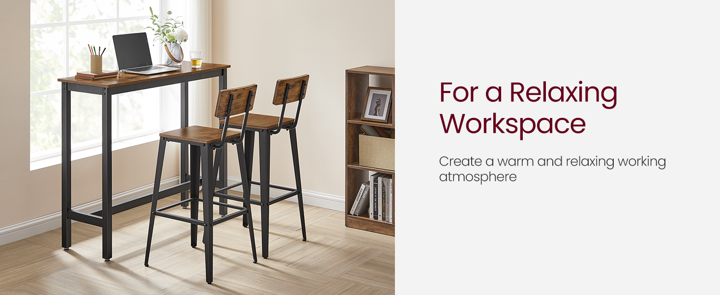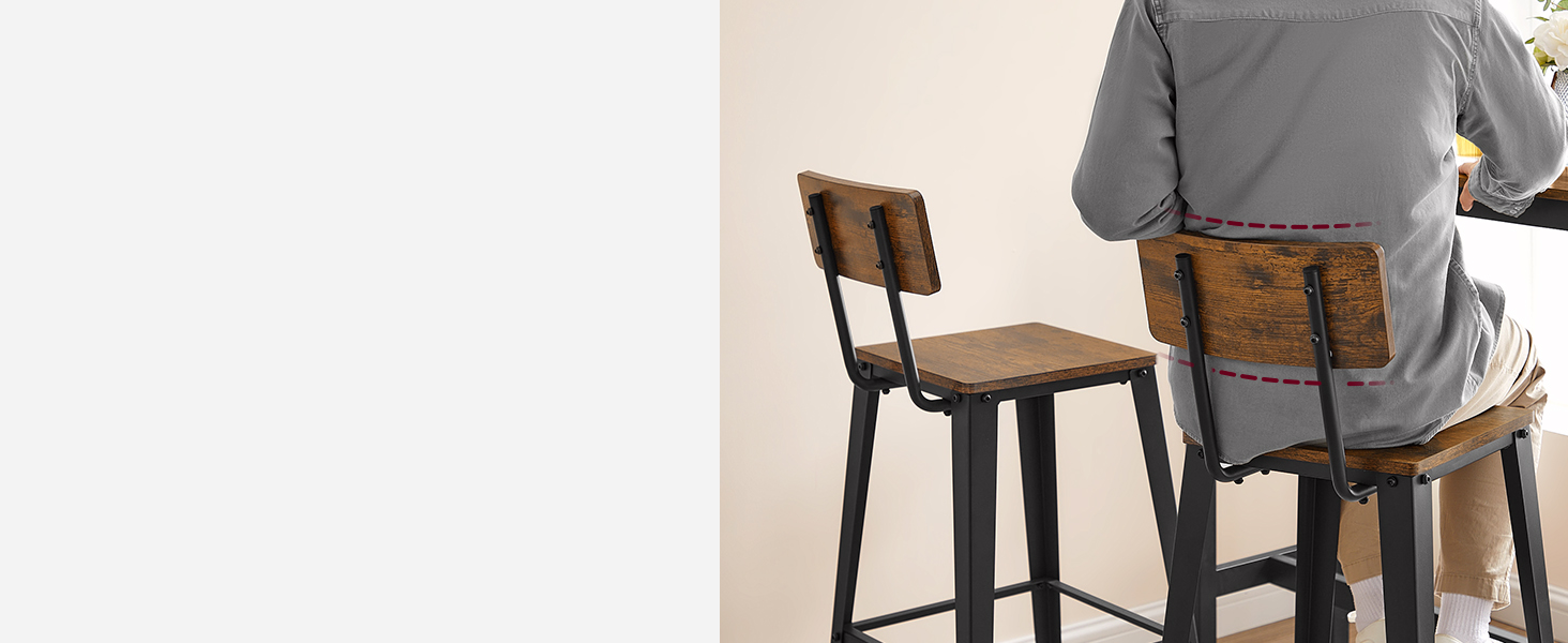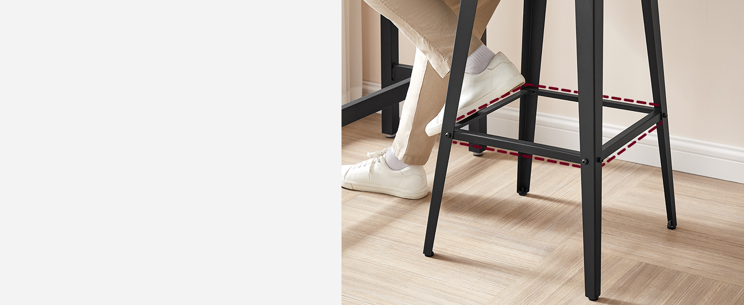 [Stable, Strong, Safe] High-quality particleboard, sturdy metal legs, and a footrest give the stool a high level of stability—each stool can support up to 242 lb; foot pads make the stool non-slip and safe to sit on
