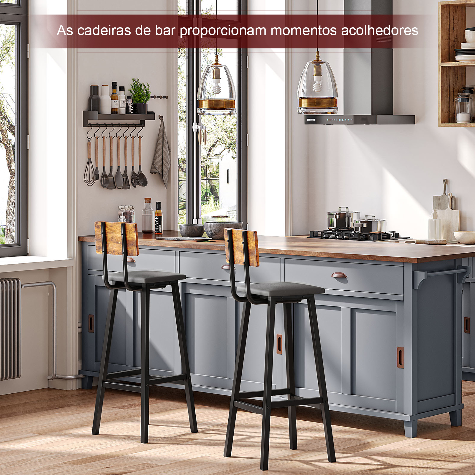 [What You Get] A set of 2 bar stools to match your bar table or kitchen island and create a perfect bar atmosphere