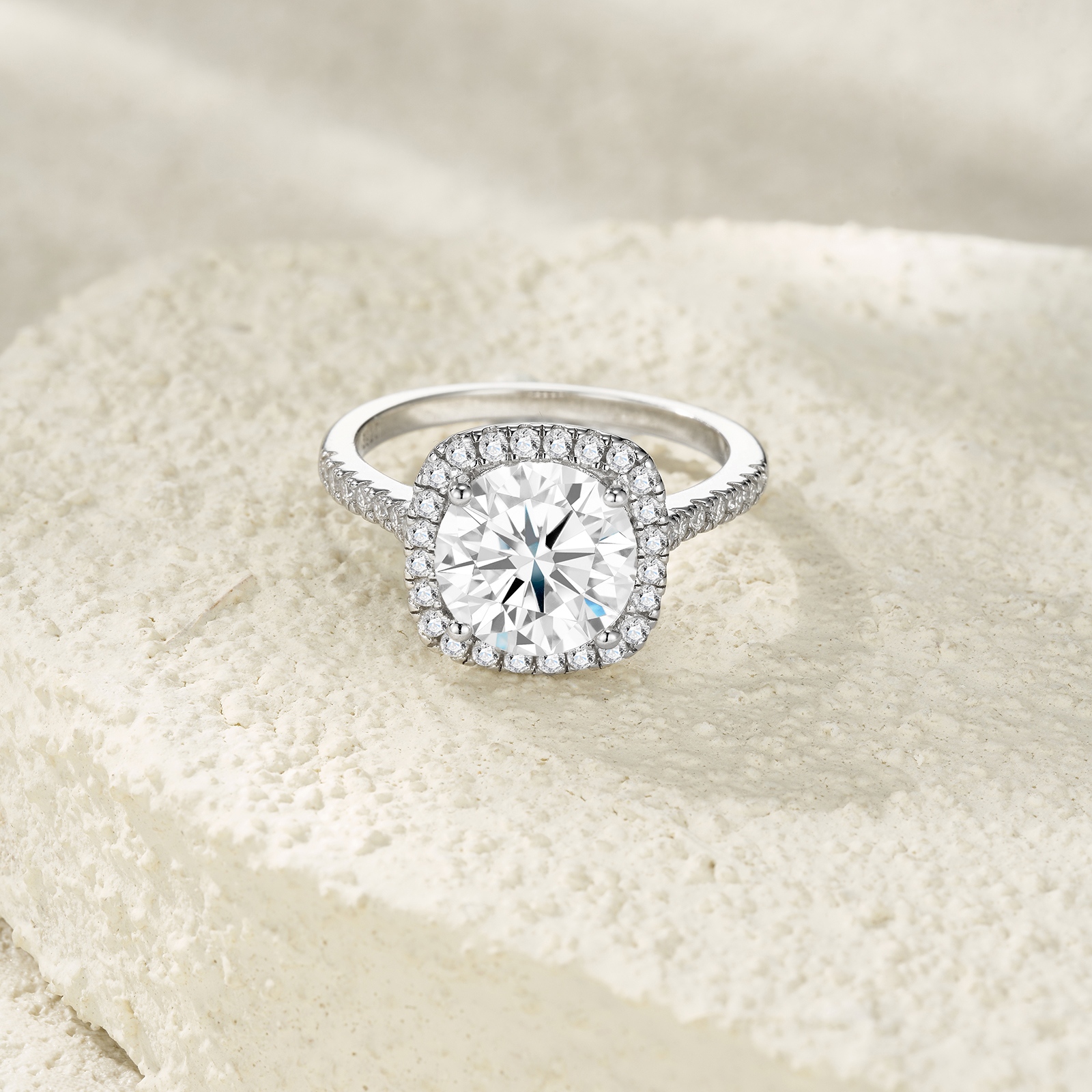 2-carat Luxury Fashion Minimalist Trend Jewelry Silver Ring Set With Top-quality Moissanite, Made Of S925 Silver With Electroplated Platinum.