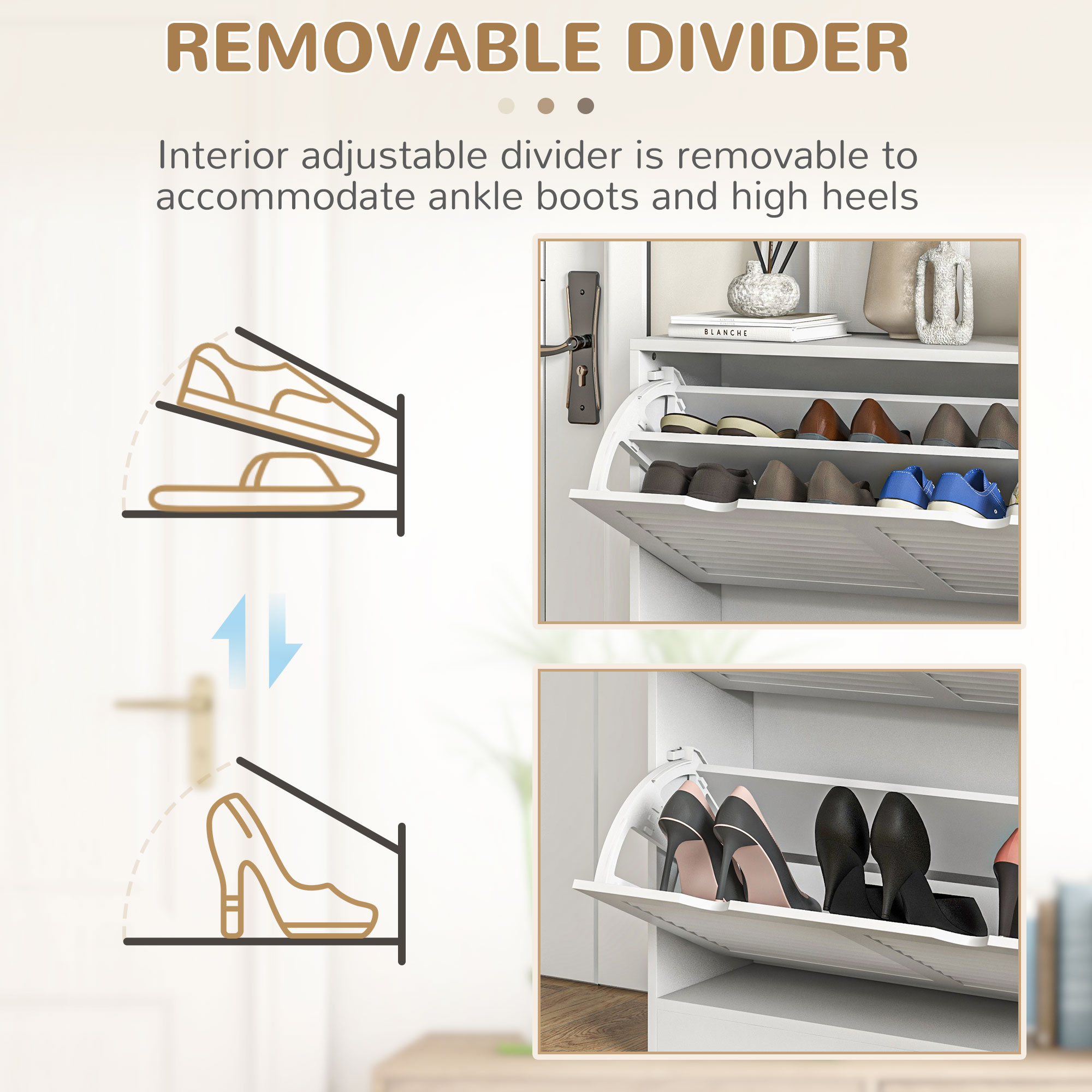 A slim shoe storage cabinet is a must-have for every family, but not all designs cater to your needs. 's narrow shoe cabinet is thoughtfully crafted for small entryways, featuring two flip louvered doors with adjustable shelves to accommodate shoes of various sizes. The countertop provides space to display your favourite decorations, while the anti-tipping design ensures safety for homes.