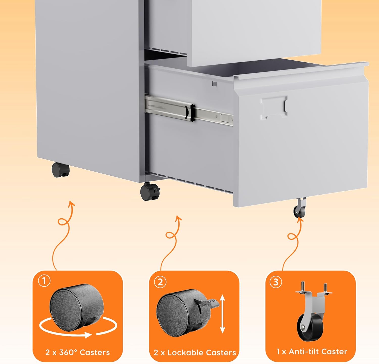 2 Drawers Mobile File Cabinet, Metal Under Desk Cabinet With Lock, For Office & Home, Legal Letter Size, Assembly Required White