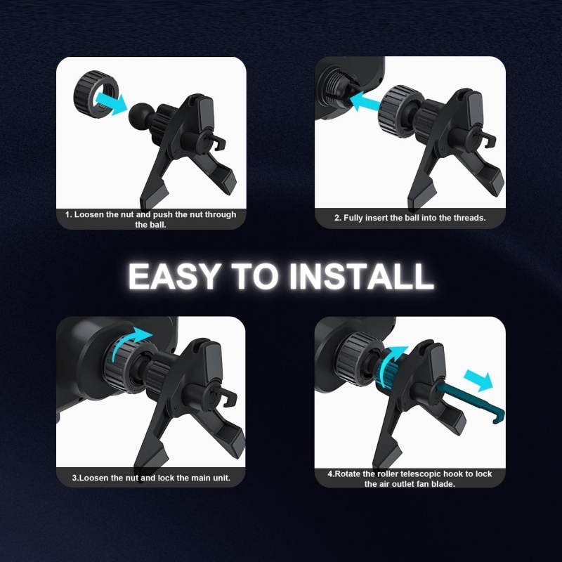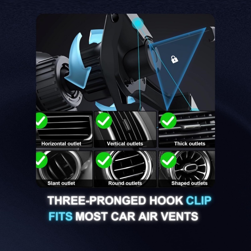 [Universal Compatibility] Compatible with a wide range of mobile phones and pads, this car vent grille phone holder supports various devices and sizes. This holder will accommodate your device and provide a and charging solution