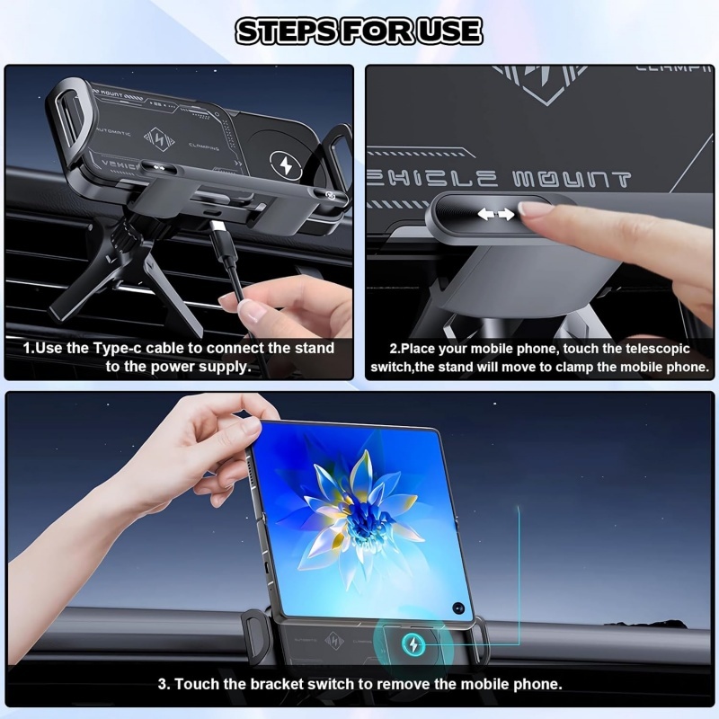 Description:[Versatile Design] The high intelligent mobile phone/pad holder is not a wireless car charger, but also a high intelligent mobile phone/pad holder. It provides a convenient solution for charging your device while securely holding it in place