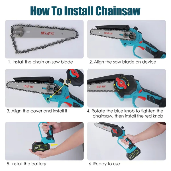 *Safe & User-Friendly Design*:Designed with a safety switch,you need to hold down the switch and press the trigger simultaneously to start this cordless chainsaw,thus preventing you from accidental injury. Auto oil lubrication system promotes smoother cuts and extends the life of the chain by reducing wear and tear caused by friction. Reliable motor and battery provide overheating protection to avoid potential safety hazards.