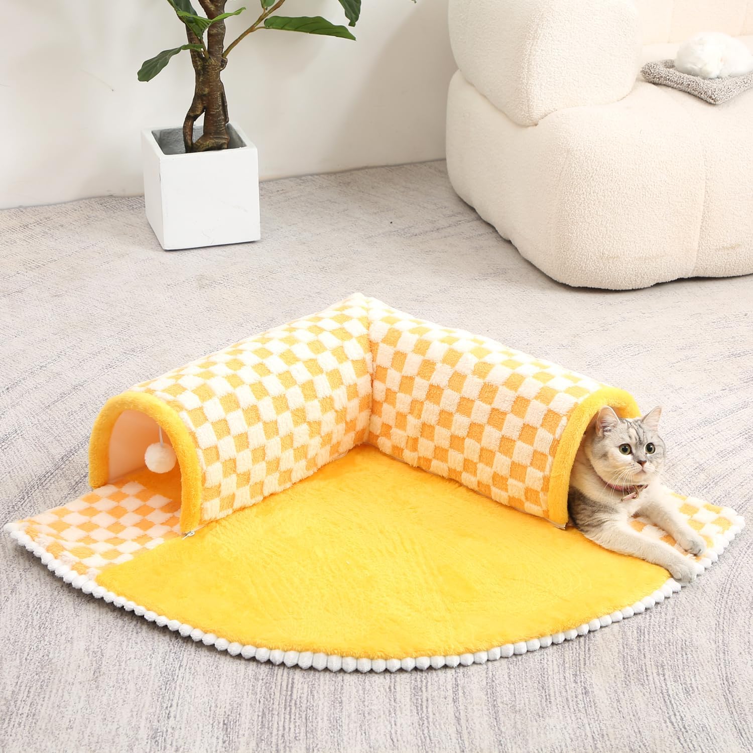 It is made of skin-friendly and soft plush fabric, and the mat is designed to be thick, allowing cats/puppies to sleep comfortably even after playing tired.