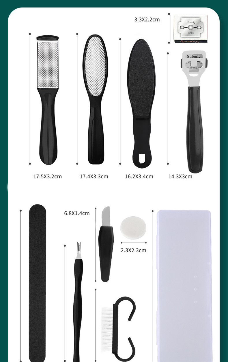 Blade, sole file, curved file, double-sided sandpaper file, foot planer, pedicure knife, silicone sheet, nail file, dead skin fork, cleaning brush