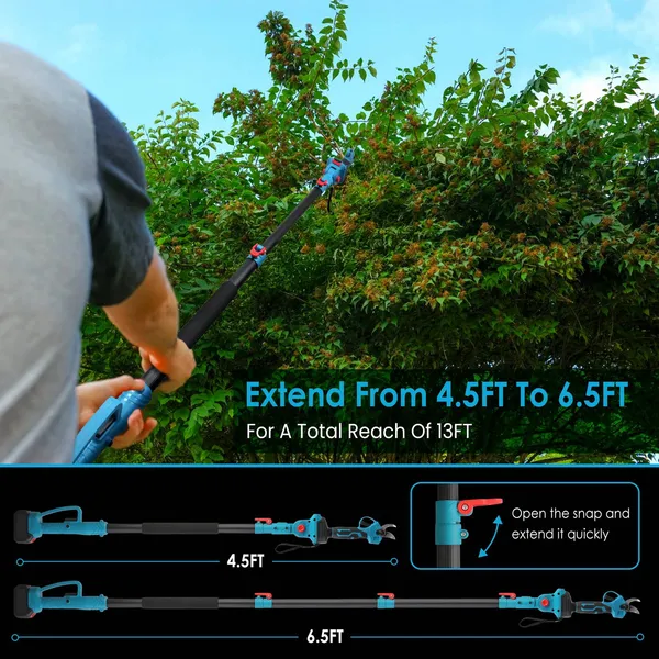2-In-1 Electric Pruning Shear With Extension Pole 21V 4.0Ah Batteries Powered Cordless Pruner Reach 13FT High 0.98in Cutting Diameter For Tree Trimming