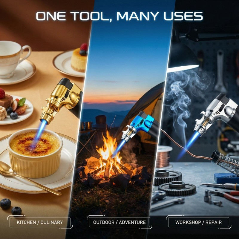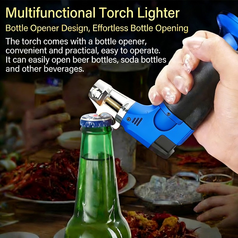 2 in 1 Gas Micro Blow Torch Lighter Welding Soldering Brazing with Bottle Opener Adjustable Windproof High Temperature Flame Refillable Lighter with Safety Lock and Flame Lock Function Essential Tool for Camping BBQ Cigar Baking and Parties.