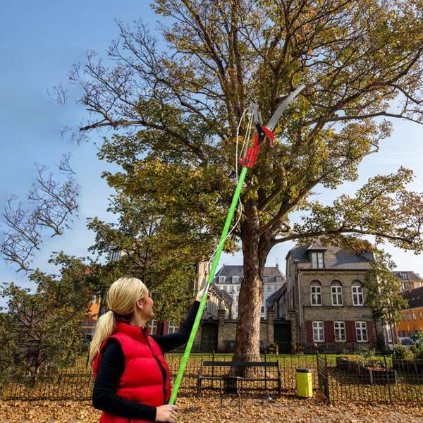 This extendable manual pole saw can be adjusted up to around 28ft, making high branches within reach. No need to climb trees or ladders. Provide a scissor-shaped pruner with an effort-saving lever structure and a double-hook saw blade for thicker branches. Also come with an Oxford fabric bag for pole and blade storage. The included goggles and gloves ensures your safety when pruning.