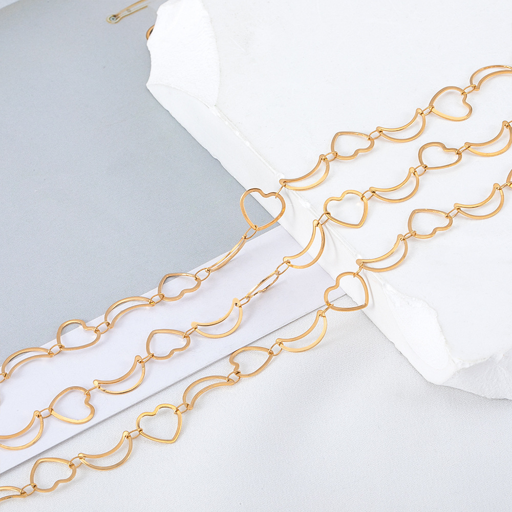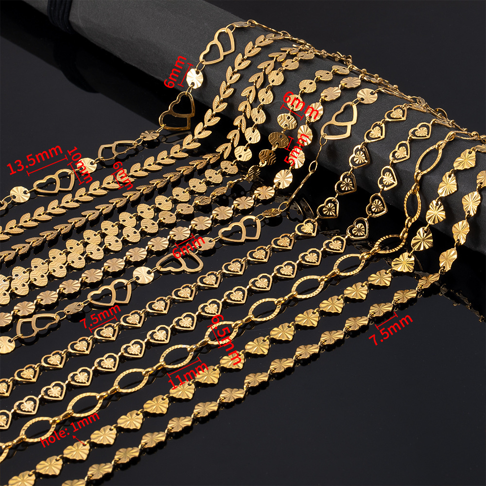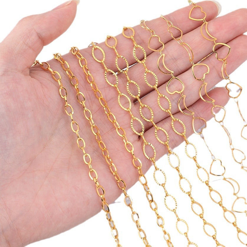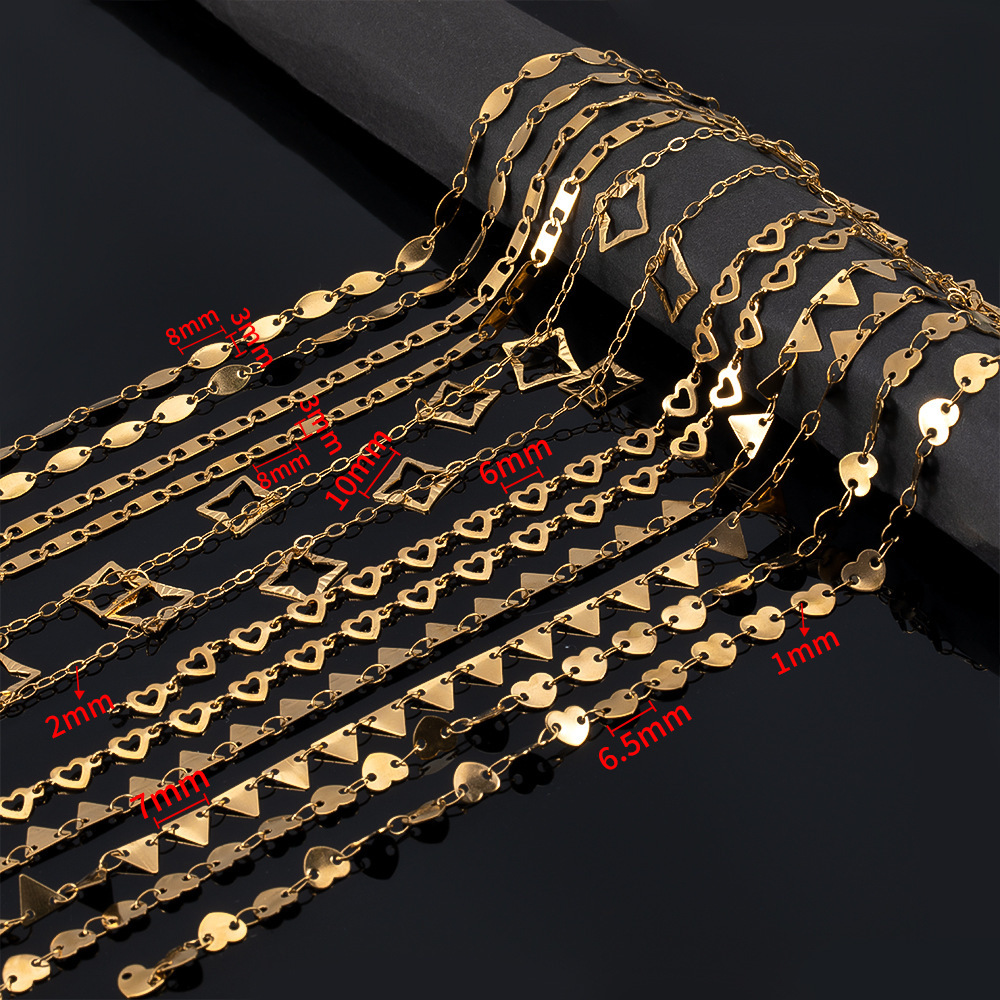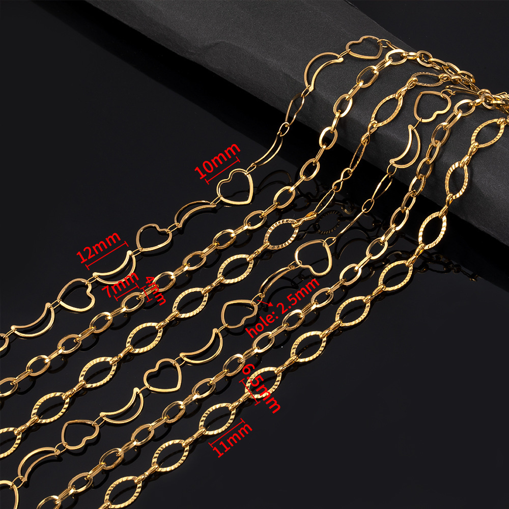 Color: gold oval pattern chain, gold Love pattern chain, gold stud chain, golden-6mm airplane chain, golden-6mm embossed love necklace, golden-5mm cross frame chain, golden-5mm XINGX bracelet, golden-11x6. 5mm eye chain, gold hollow love moon chain, gold Doppel Herz round chain, gold oval chain, gold Love necklace, golden, round pendant chain, golden-7.7mm star pendant chain, golden-5mm hollow love necklace, golden-10mm square pendant chain, golden-9mm hollow star bracelet, golden-10mm moon chain