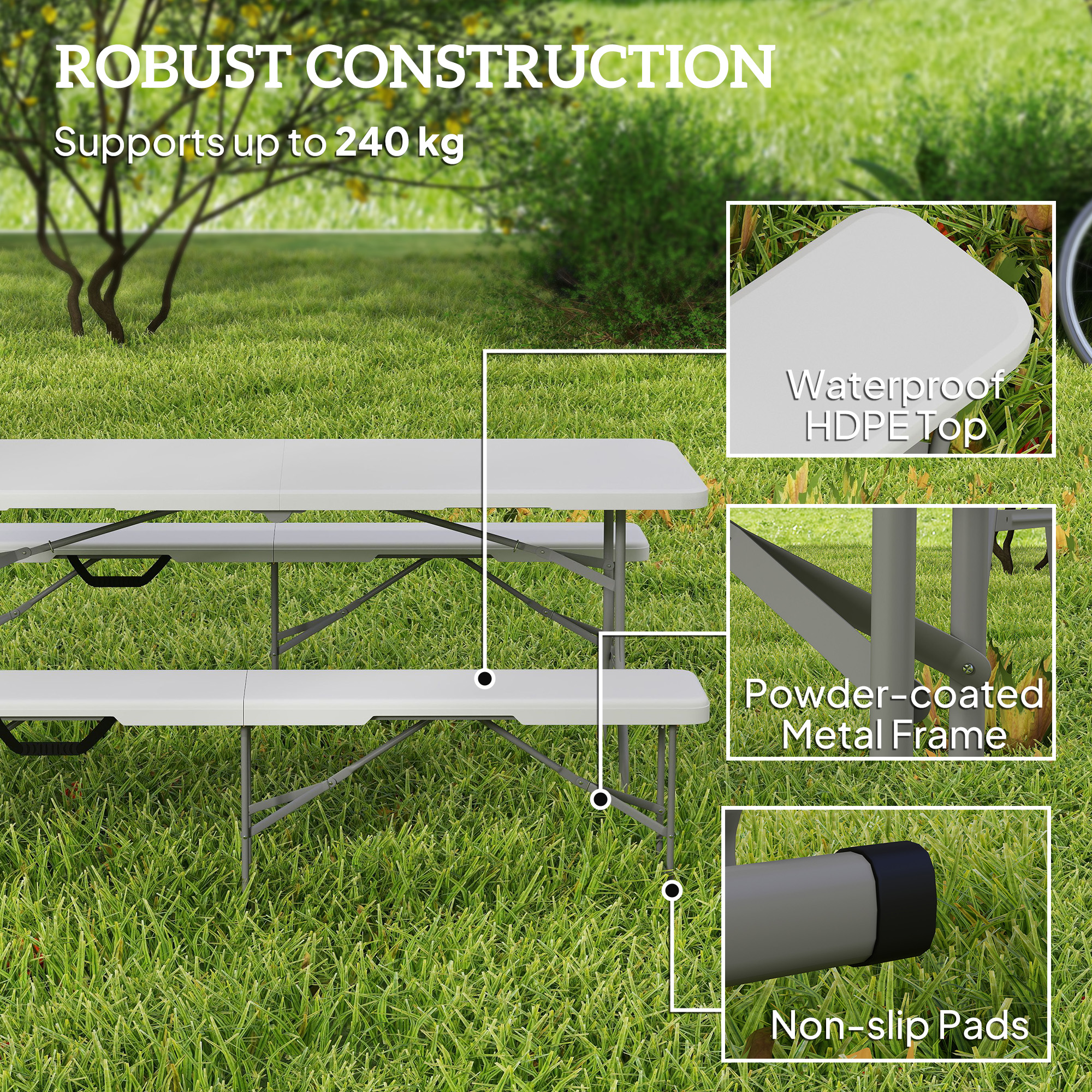 2 Pack 6 Ft Portable Foldable Bench Seats, Plastic Folding Benches With Carrying Handle For Camping, White