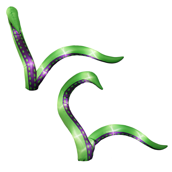 Make your Halloween display come alive with this 2-pack of 6.9FT inflatable octopus tentacles—an eerie and creative decoration perfect for windows, rooftops, or garden areas. Each tentacle features built-in LED lights that cast a glowing white hue, adding a spooky underwater monster vibe to your haunted scene. With quick setup, weather-resistant materials, and easy storage, these tentacles are a show-stopping way to thrill guests and trick-or-treaters alike. Ideal for homes, parties, and yard displays, they'll transform your space into a chilling spectacle.