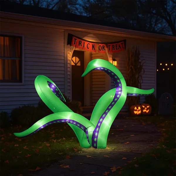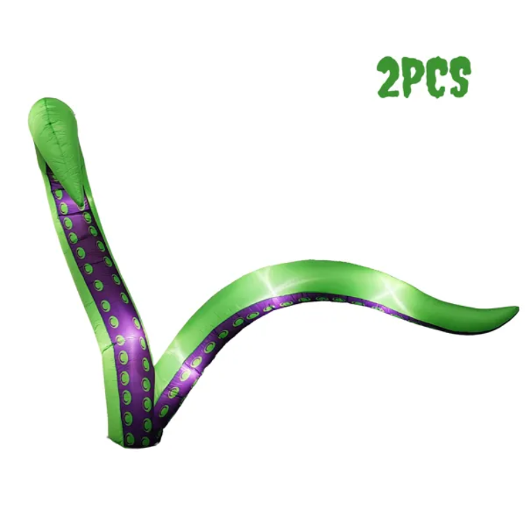 Make your Halloween display come alive with this 2-pack of 6.9FT inflatable octopus tentacles—an eerie and creative decoration perfect for windows, rooftops, or garden areas. Each tentacle features built-in LED lights that cast a glowing white hue, adding a spooky underwater monster vibe to your haunted scene. With quick setup, weather-resistant materials, and easy storage, these tentacles are a show-stopping way to thrill guests and trick-or-treaters alike. Ideal for homes, parties, and yard displays, they'll transform your space into a chilling spectacle.