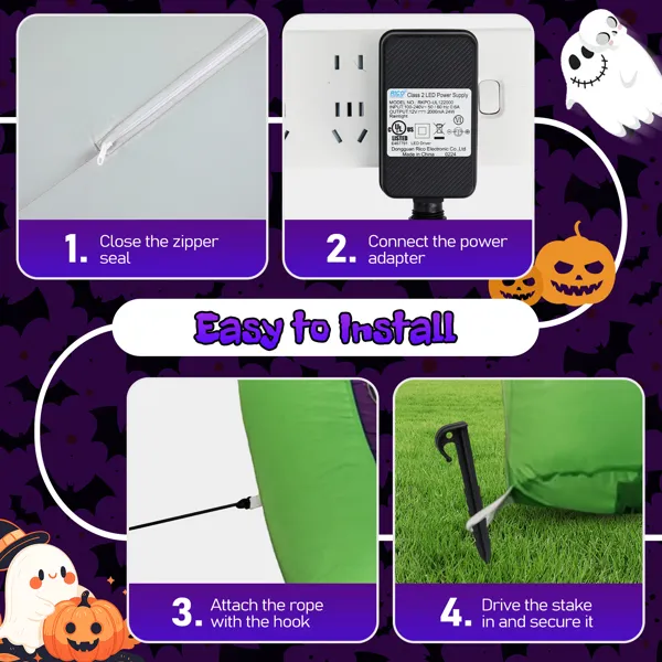 3. Built-in LED Lights: Internal LED lights create a glowing effect at night, adding an eerie but fun ambiance to your lawn, patio, or party.