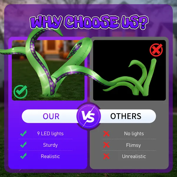 1. Striking Tentacle Design: Measuring 6.9 feet tall, these inflatable octopus tentacles appear to burst out from your window or rooftop—creating a truly eye-catching Halloween effect.