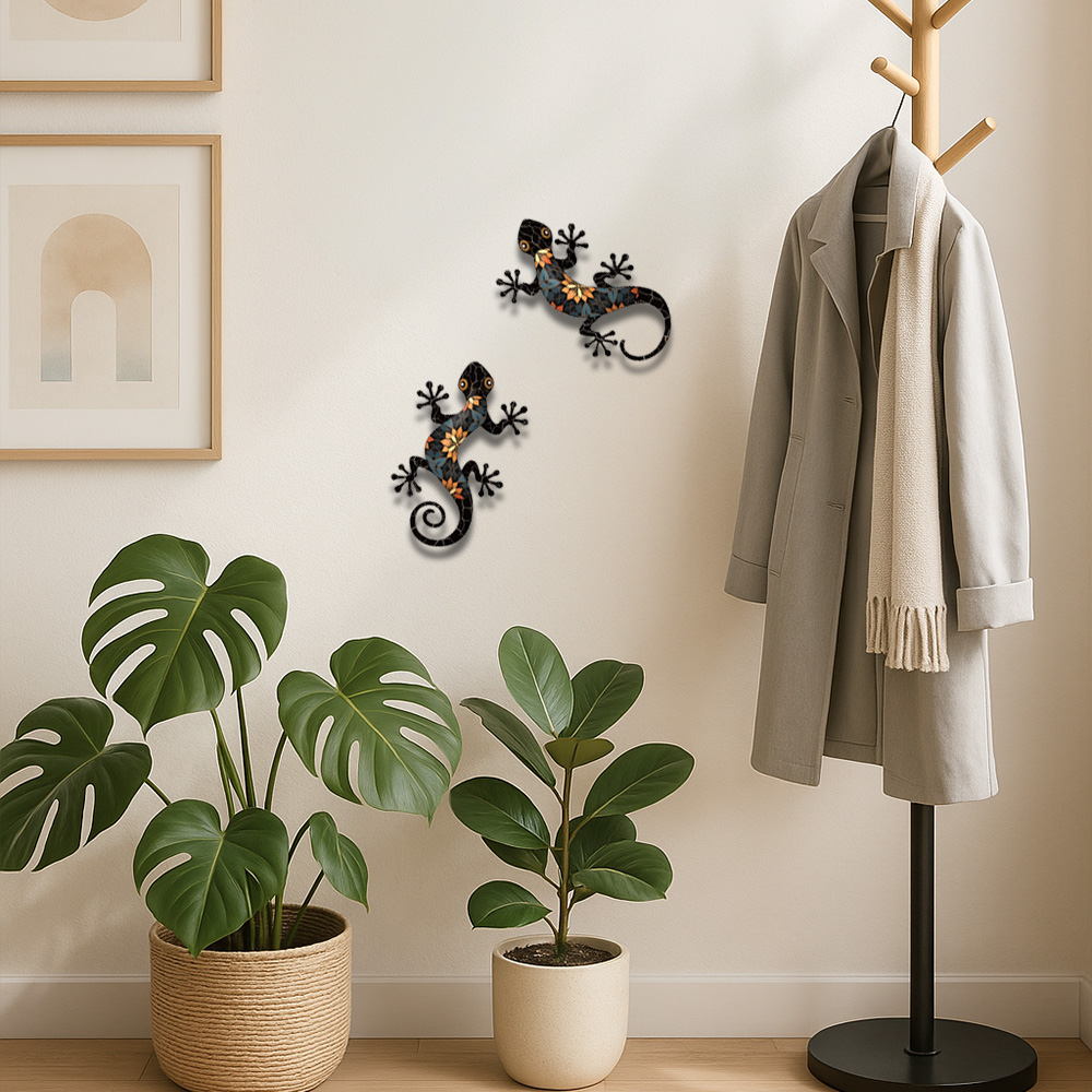 Metal Gecko Wall Ornaments 2PCS Alluring Creatures for Indoor Outdoor Decor Gardens Patios Fences Durable Weather-Resistant Sculptures Wall Sculptures