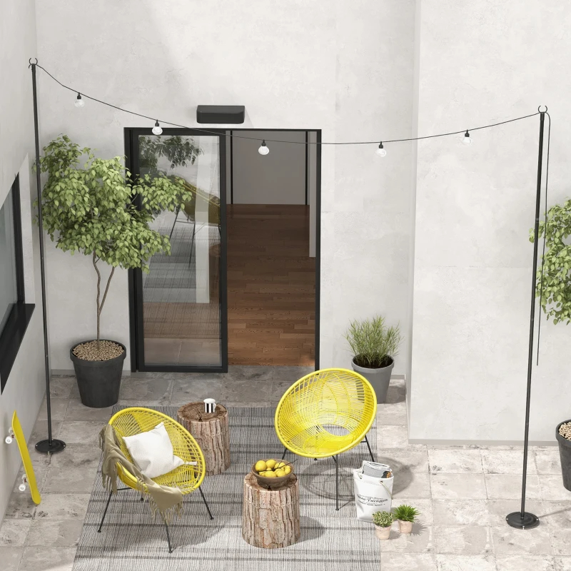 2 Pack Of 10' String Light Poles, Steel Hanging Lighting Stand For Patio, Backyard, Deck, Wedding, Party, Black