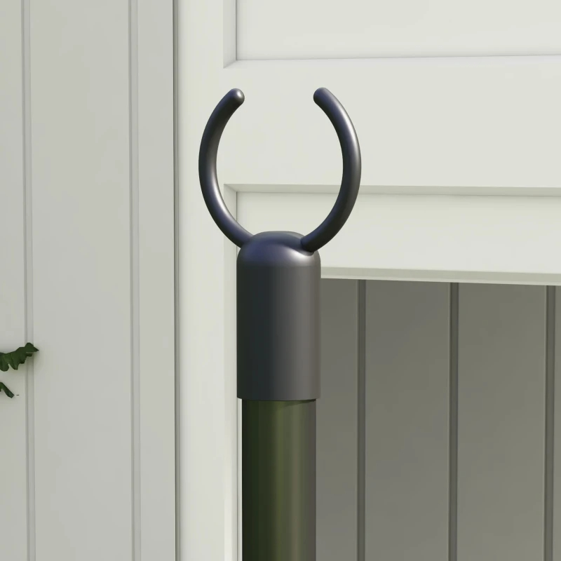 - Ground stakes for soft ground, expansion screws for hard ground, and wall brackets