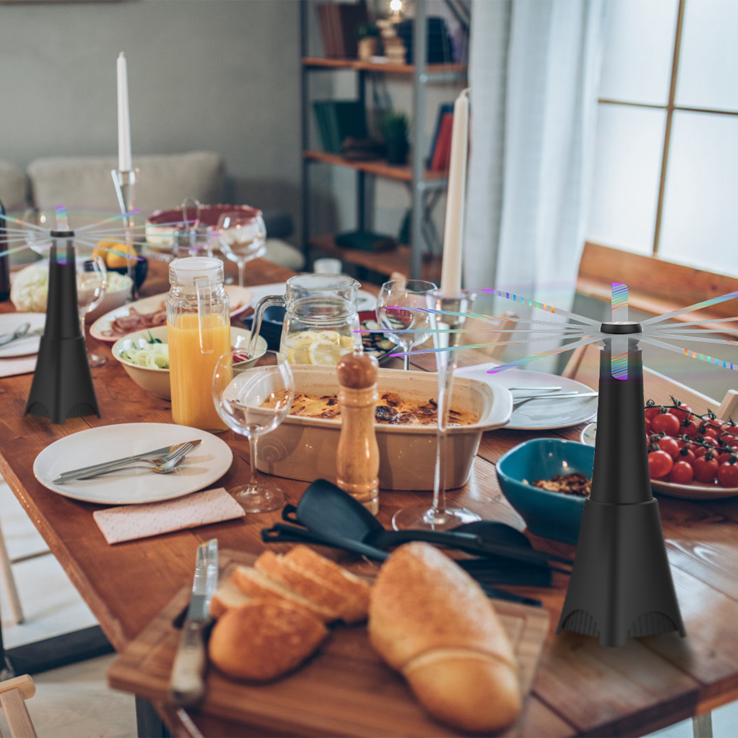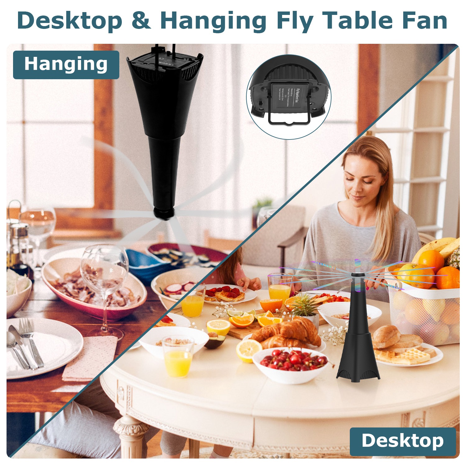 *Effective Fly Repellent Fan*:Our fly repellent fan with reflective patterns can create a flies-hated radius on table,effectively prevent annoyed flies or insects from interrupting your tranquility of meal. Please ensure the food is within the effective radius of the fan for better using effect.