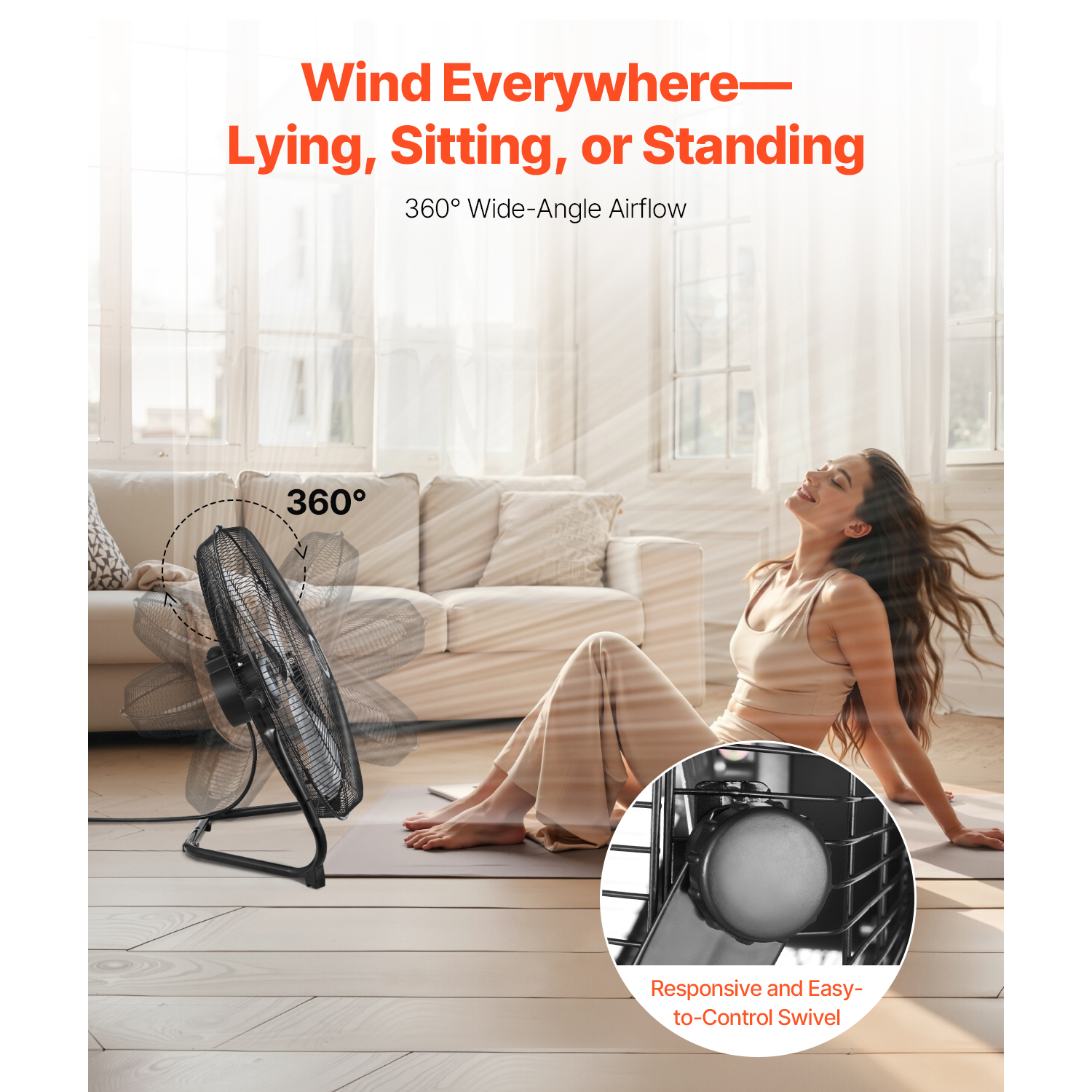 2 PCS 20 In Floor Fan 3 Speeds 360 Adjustable Tilt High-Velocity Industrial Fan