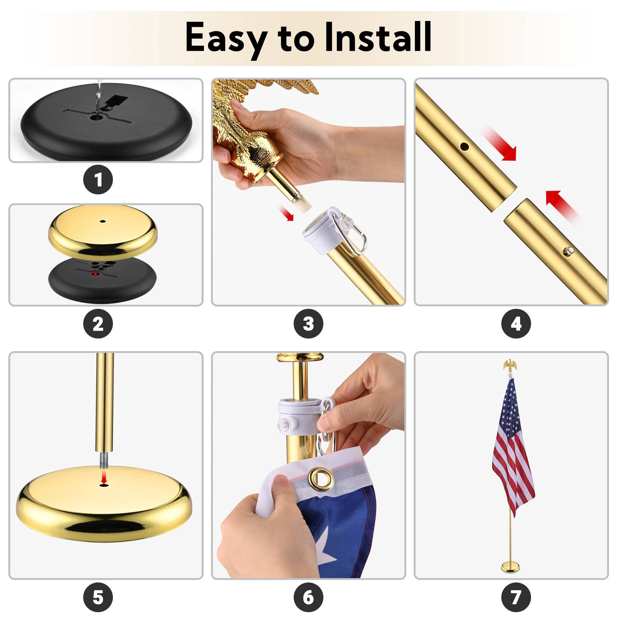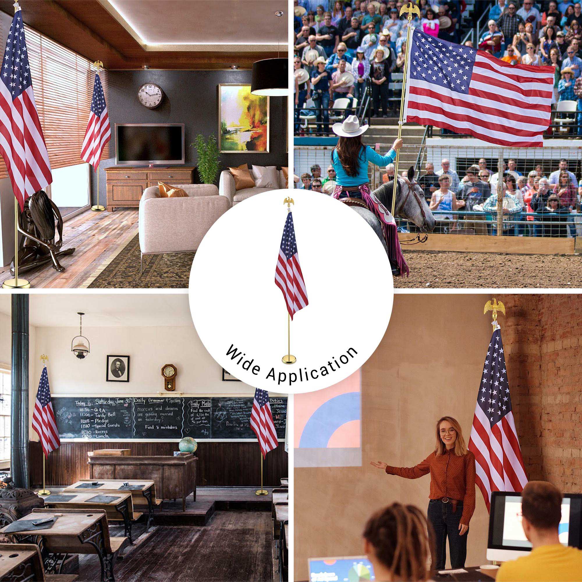 - Complete Flagpole Kit - Includes 2 pcs 8 ft indoor sectional flagpoles, 2 pcs gold eagle finials, 2 pcs American national flags, 2 pcs base stands and accessories, one package for everything you need to display national flag indoors, perfect decoration for government agencies, institutions, corridor, hallway, office, embassy, school, city hall, church, military ceremony for veterans