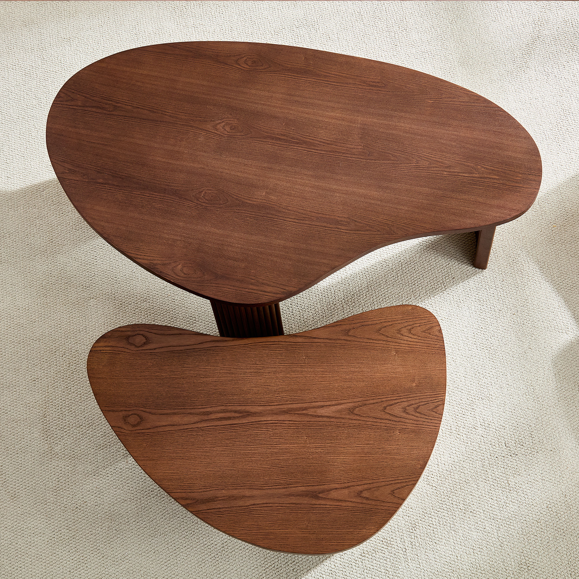 Product Name:2-Piece Modern Irregular Shape Coffee Table Set for Living Room,Easy Assembly Nesting Coffee Tables, End Side Tables for Living Room Office,Walnut Color