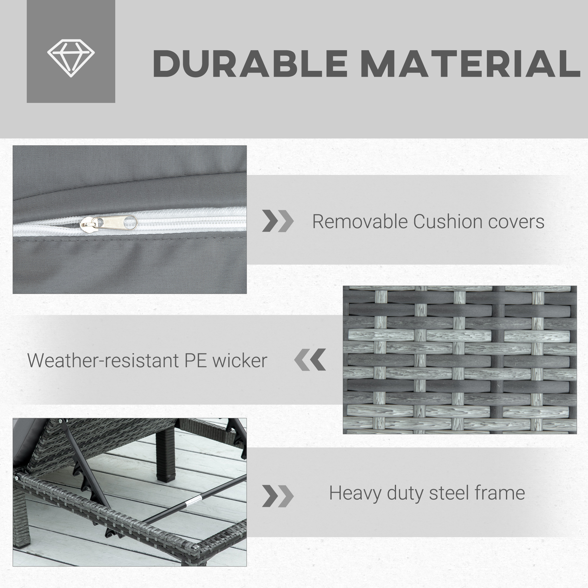 Choose this garden loungers from for the perfect sunbathing partner in the comfort of your own garden. Using galvanised metal for a stable and robust structure, the frame is wrapped in PE wicker rattan, ensuring durability outdoors with little maintenance. The five-position adjustable back allows you to set it to a level which is best for you, whilst a longline padded seat provides all the comfort you need, with 2 pieces lounges allowing you to relax with a friend whenever.