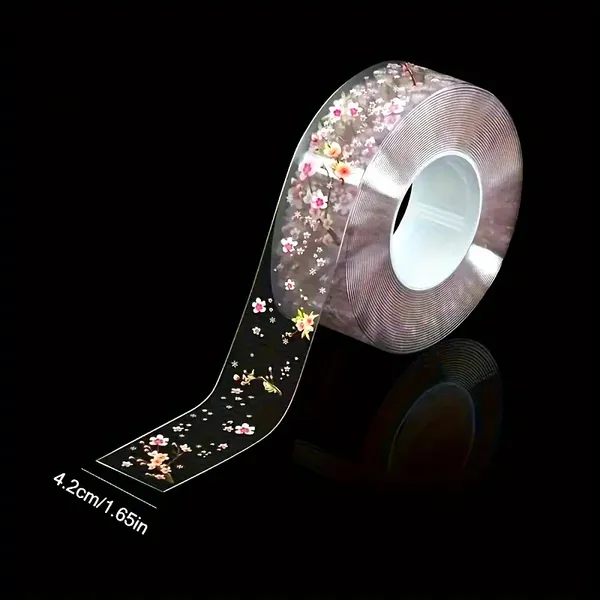 2 Rolls Waterproof Kitchen Seam Sealing Tape 118.11 Inch - Floral Design Clear Adhesive For Sink, Toilet, Stove Edges - Leak-Proof Gap Sealant With Decorative Pink Flowers On Black Background, Sealant
