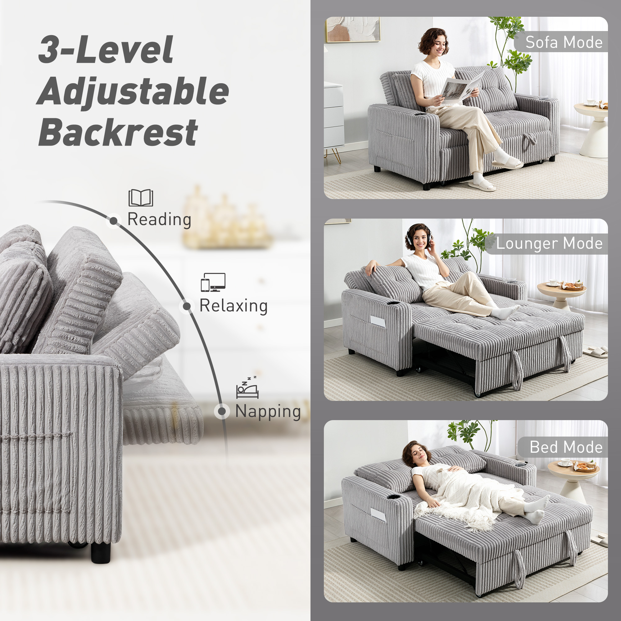 Tired of juggling remotes and drinks during movie night, or the stress of last-minute guest stays? This loveseat bed settee simplifies everything. It effortlessly becomes a pull out sleeper sofa for visitors. With built-in cup holders, storage pockets and three recline angles, your comfort is always personalised. Settle in for an evening where convenience and relaxation are designed right into your living space.