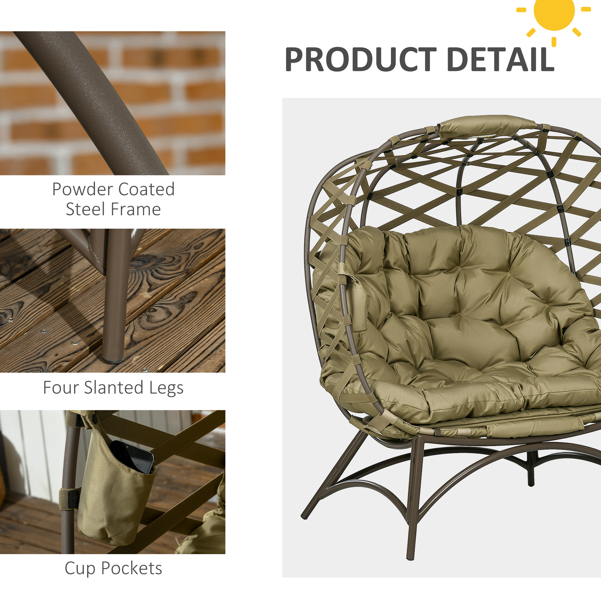 This two-seater egg chair brings you and company together in comfort - and style. It comes in a large egg chair shape, fitted with a large padded cushion to keep you comfortable. A powder coated steel frame means a strong and supportive structure, with the cross weaves adding subtle style. Two side pockets offer handy storage for small items, right next to you.