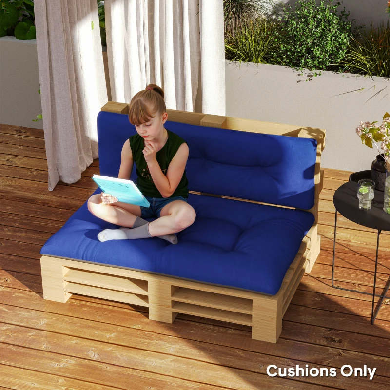 - Two Piece Patio Sofa Cushion Replacement Set: Add to or replace your existing pallet cushions for your patio furniture set with this seat padding set. Refresh and enhance your seating area. Great for lounging, guests, or relaxing under the sun