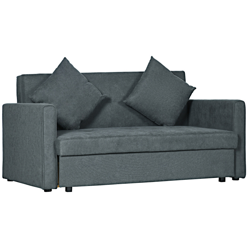 Switch from sitting to sleeping with ease, thanks to this sofa bed. The metal, wood and MDF frame means a tough core, supporting you whilst sitting and sleeping. It easily transforms from a two seater sofa into a bed - saves you time and stress. It comes with a 130 x 67.5cm storage compartment - room for keeping small pieces out of sight. Padded for comfort, this sofa bed comes complete with two small pillows.