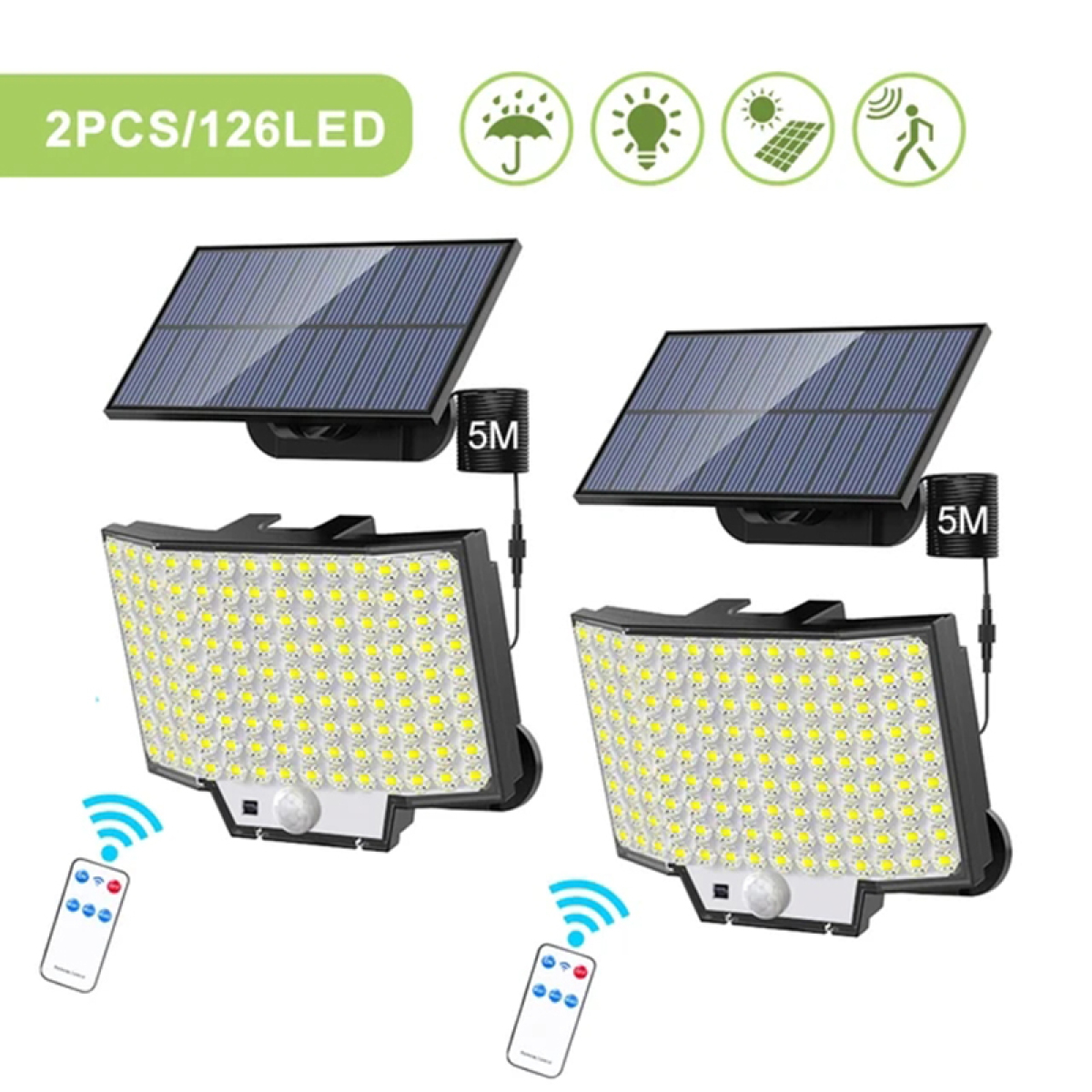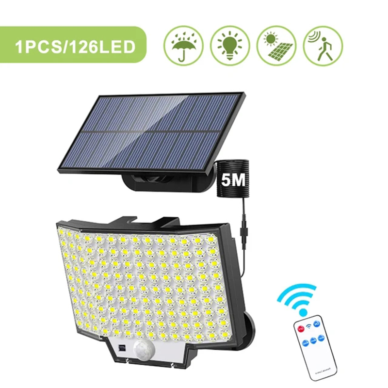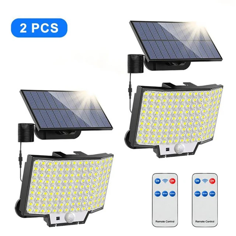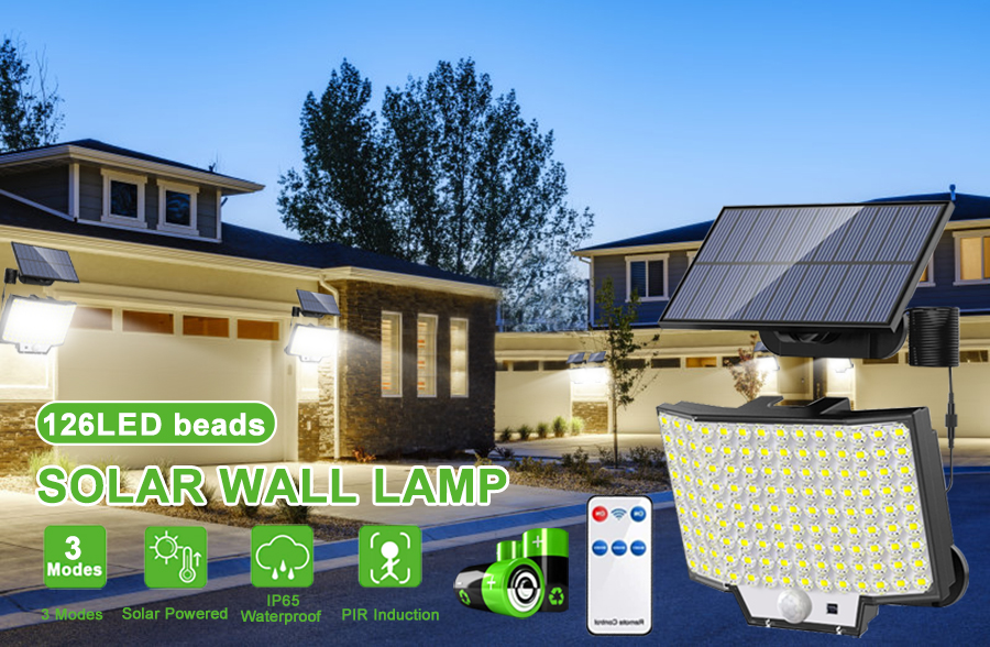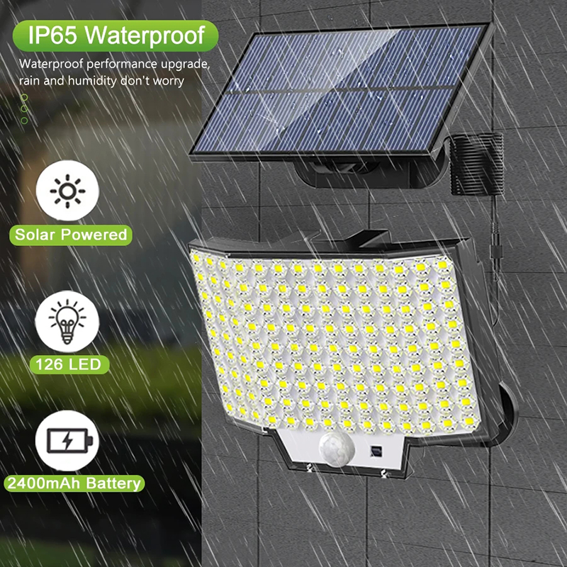 2 sets of solar LED motion sensor lights, 126 LED solar outdoor lights, 3-mode 1800mAh battery human body sensing
