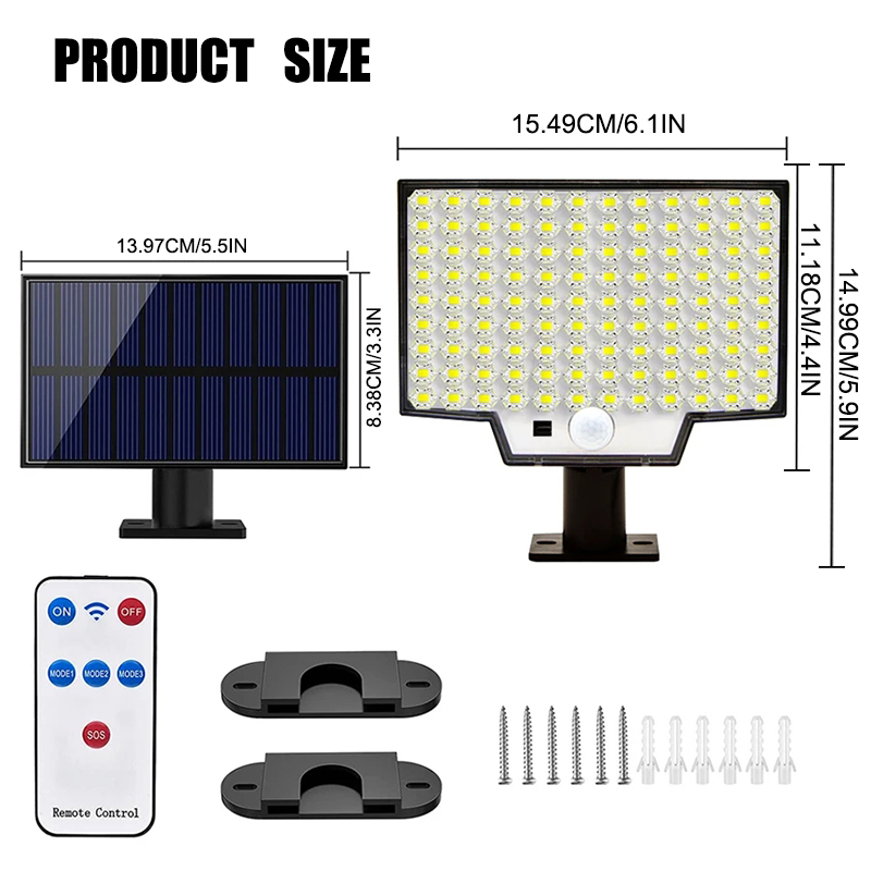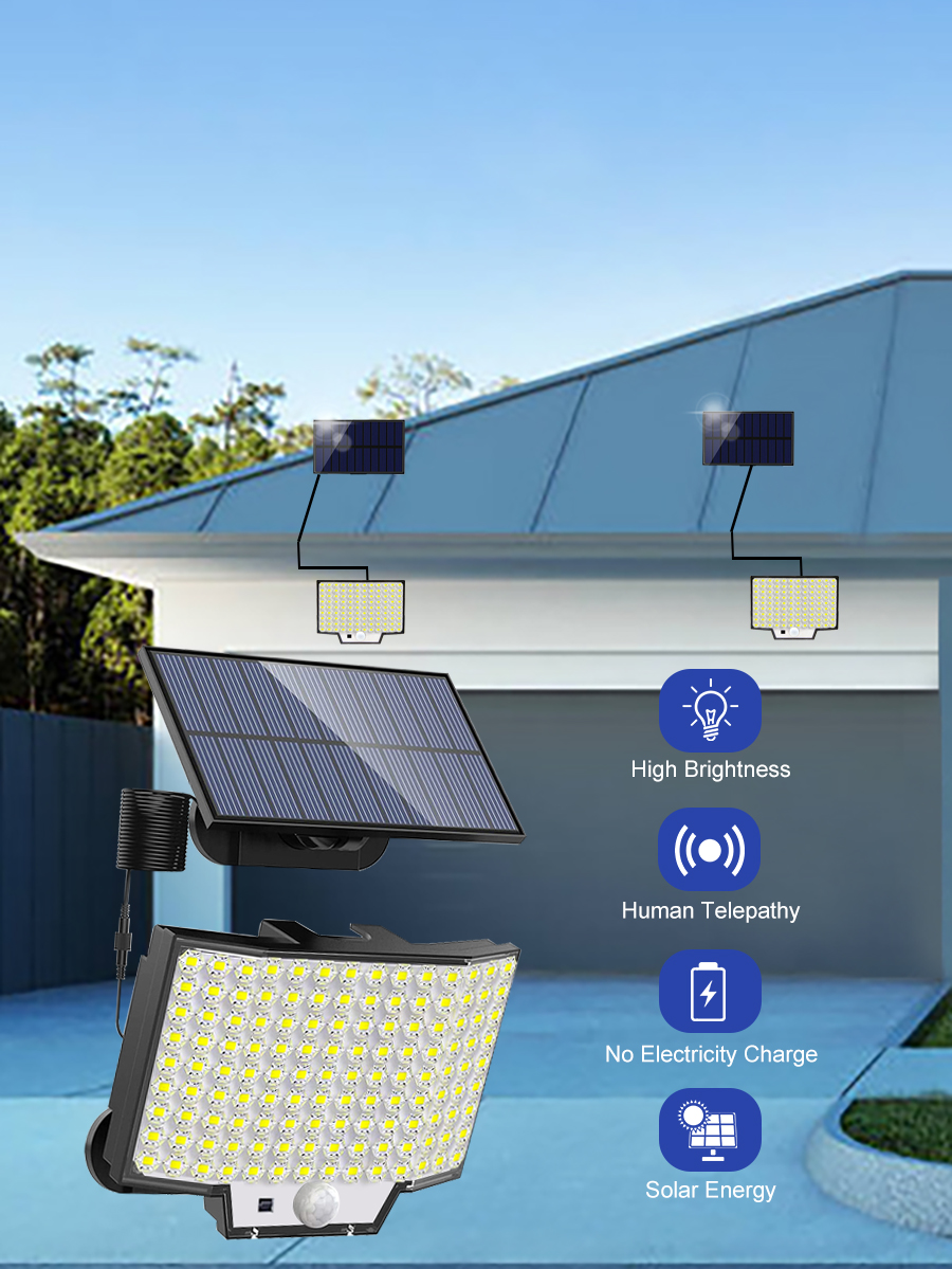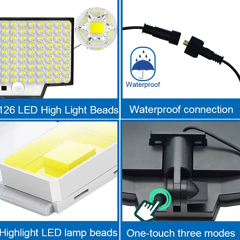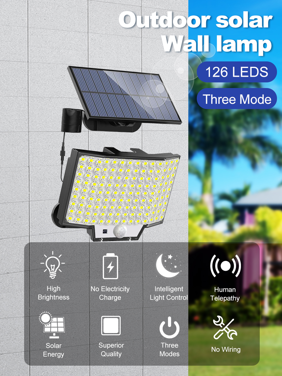 2 sets of solar LED motion sensor lights, 126 LED solar outdoor lights, 3-mode 1800mAh battery human body sensing