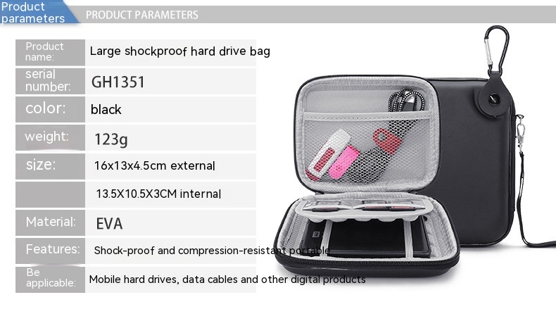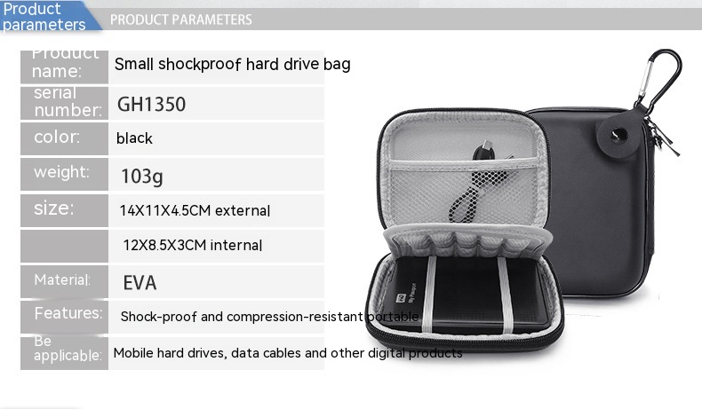 Specifications: GH1350 small size black mobile hard disk package, GH1351 large size black mobile hard disk package