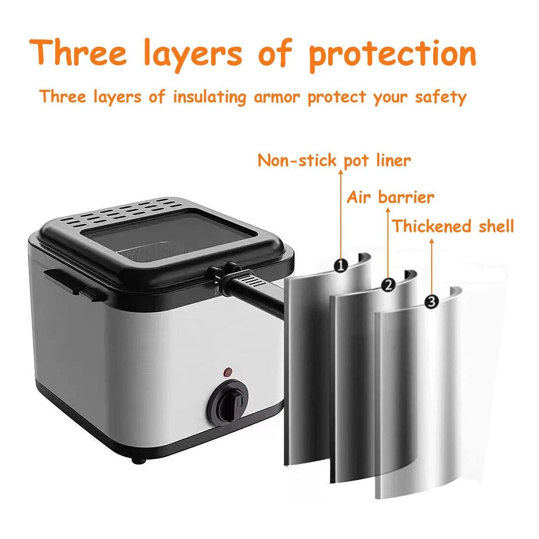 The observation window not only protects you and your kitchen from oil splashed, but also allows you to see when you food is cooked.