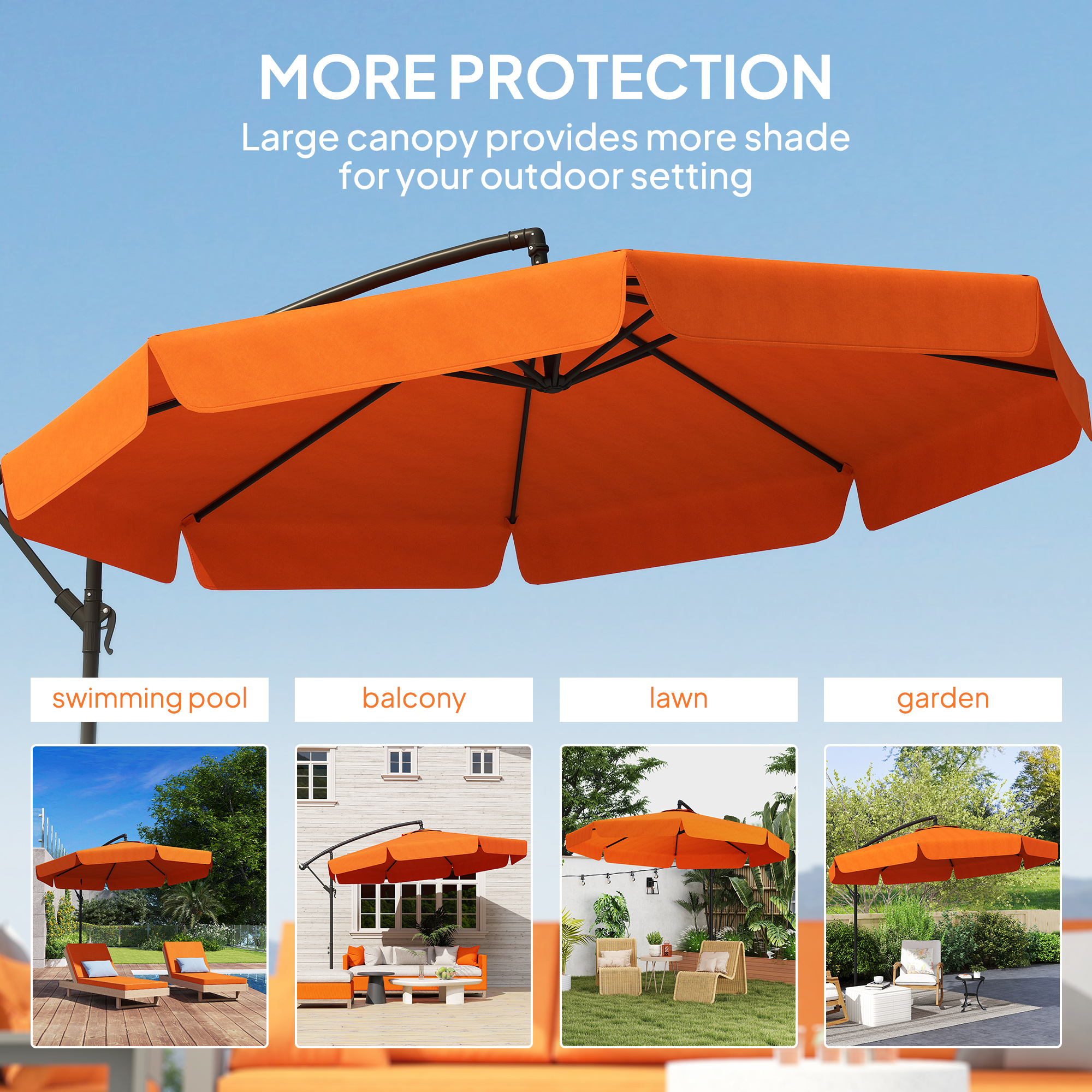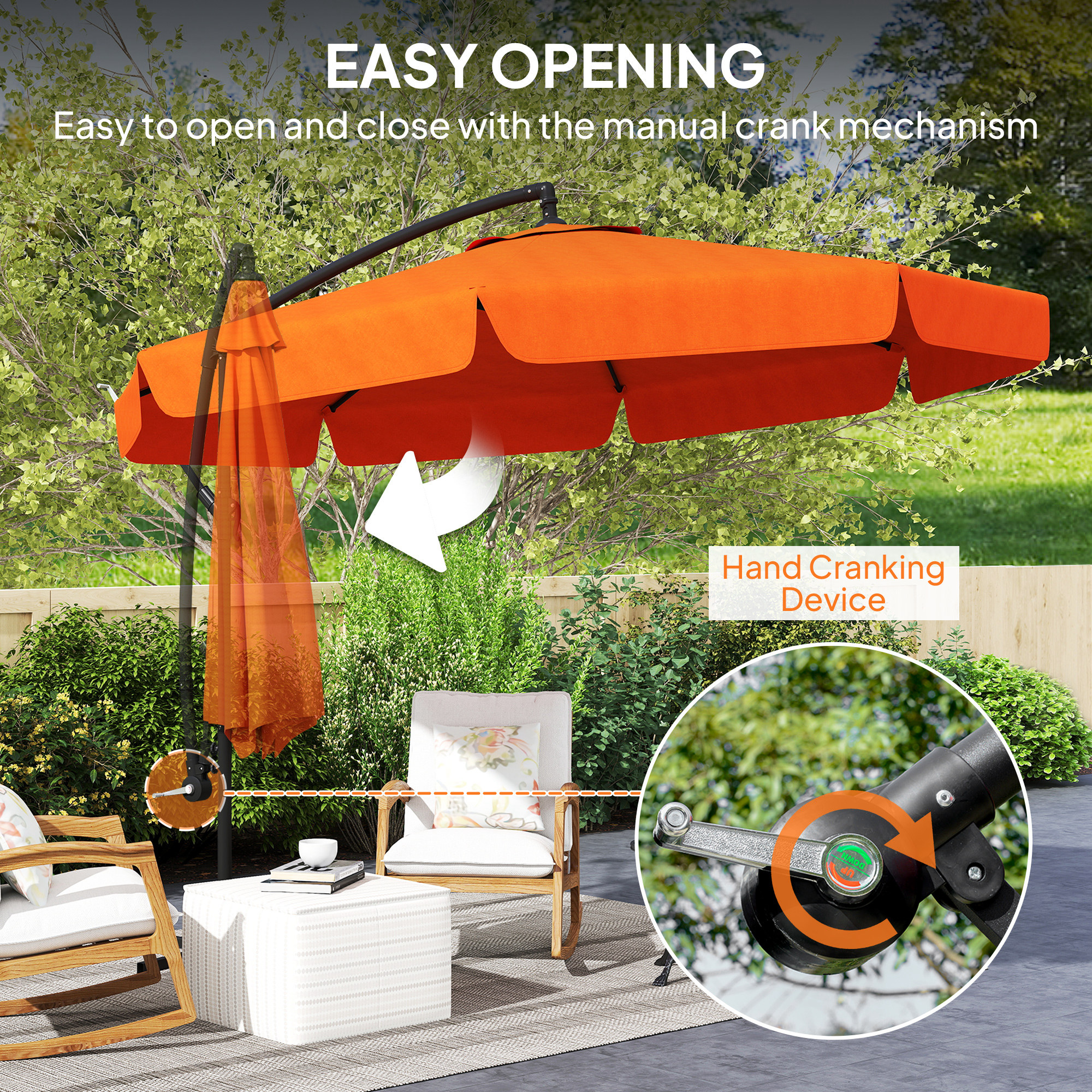 This outdoor parasol is a piece you'll love having outside. The modern overhanging design means you can keep shaded anywhere, without the hassle of a central pole getting in your way. The core structure is made from metal, so it's tough and sturdy, connecting to the garden umbrella parasol with eight ribs for support. It can provide plenty of shade, keeping you cool on hot summer days but also bringing style into your garden and beyond.