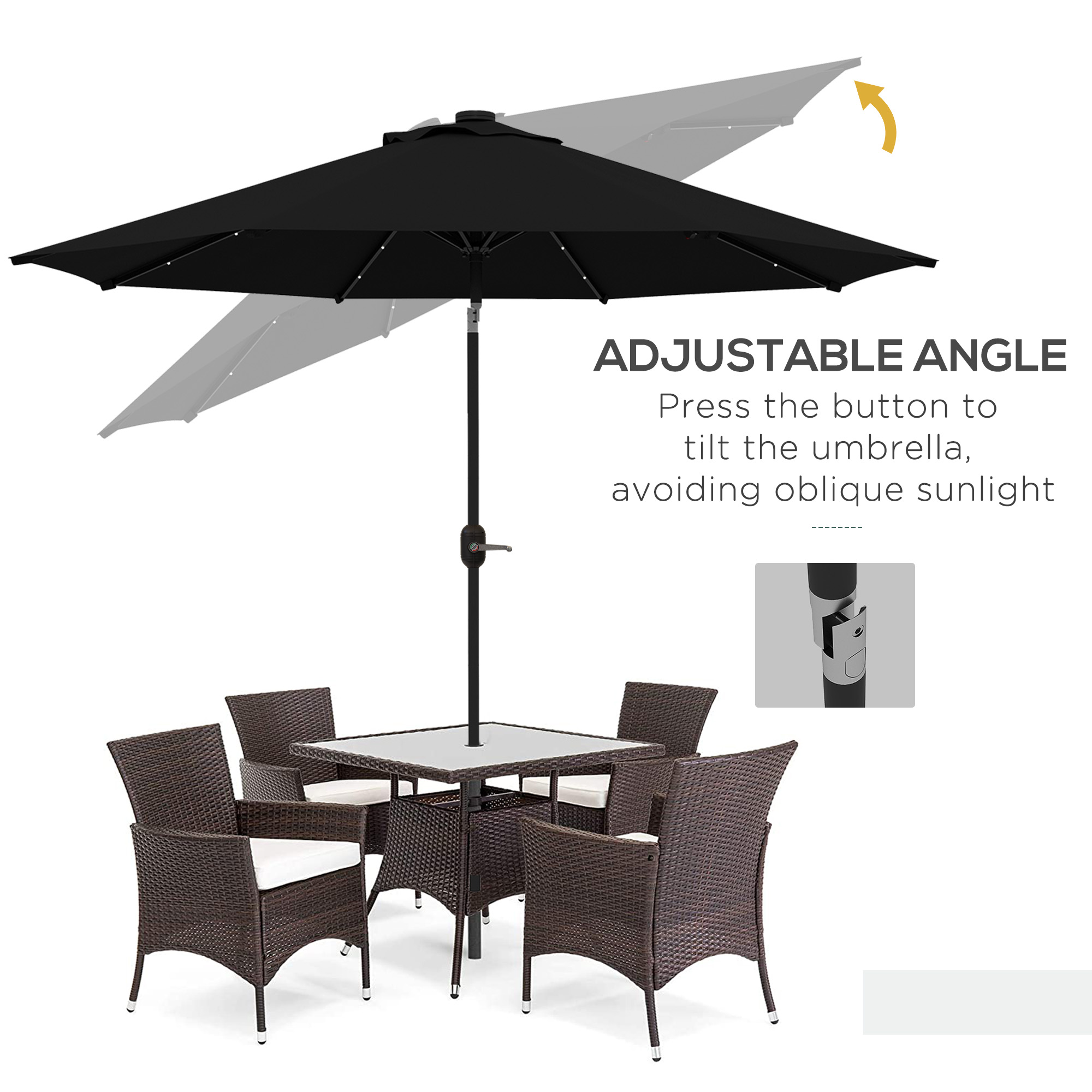 Sunny days are great, but sometimes you just need a little shade. Ensure you are covered on hot and sunny days with this garden parasol with lights from . This parasol umbrella with lights can protect you from the UV rays and light up the night with its 24 solar-powered LED lights. High-grade polyester and a metal pole withstand natural elements and ensure years of reliable use. This Solar Umbrella makes your garden more comfortable and inviting, even when night falls.