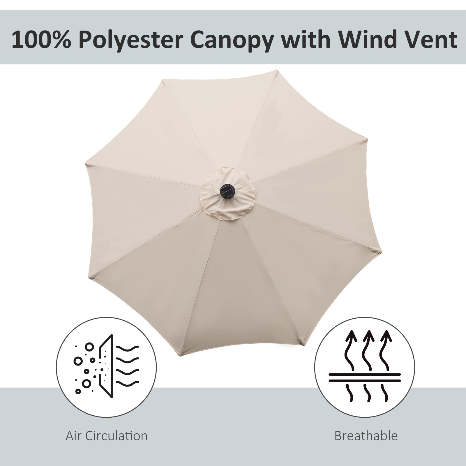 Sunny days are great, but sometimes you just need a little shade. Ensure you are covered on hot and sunny days with this garden parasol with lights from . This parasol umbrella with lights can protect you from the UV rays and light up the night with its 24 solar-powered LED lights. High-grade polyester and a metal pole withstand natural elements and ensure years of reliable use. This Solar Umbrella makes your garden more comfortable and inviting, even when night falls.