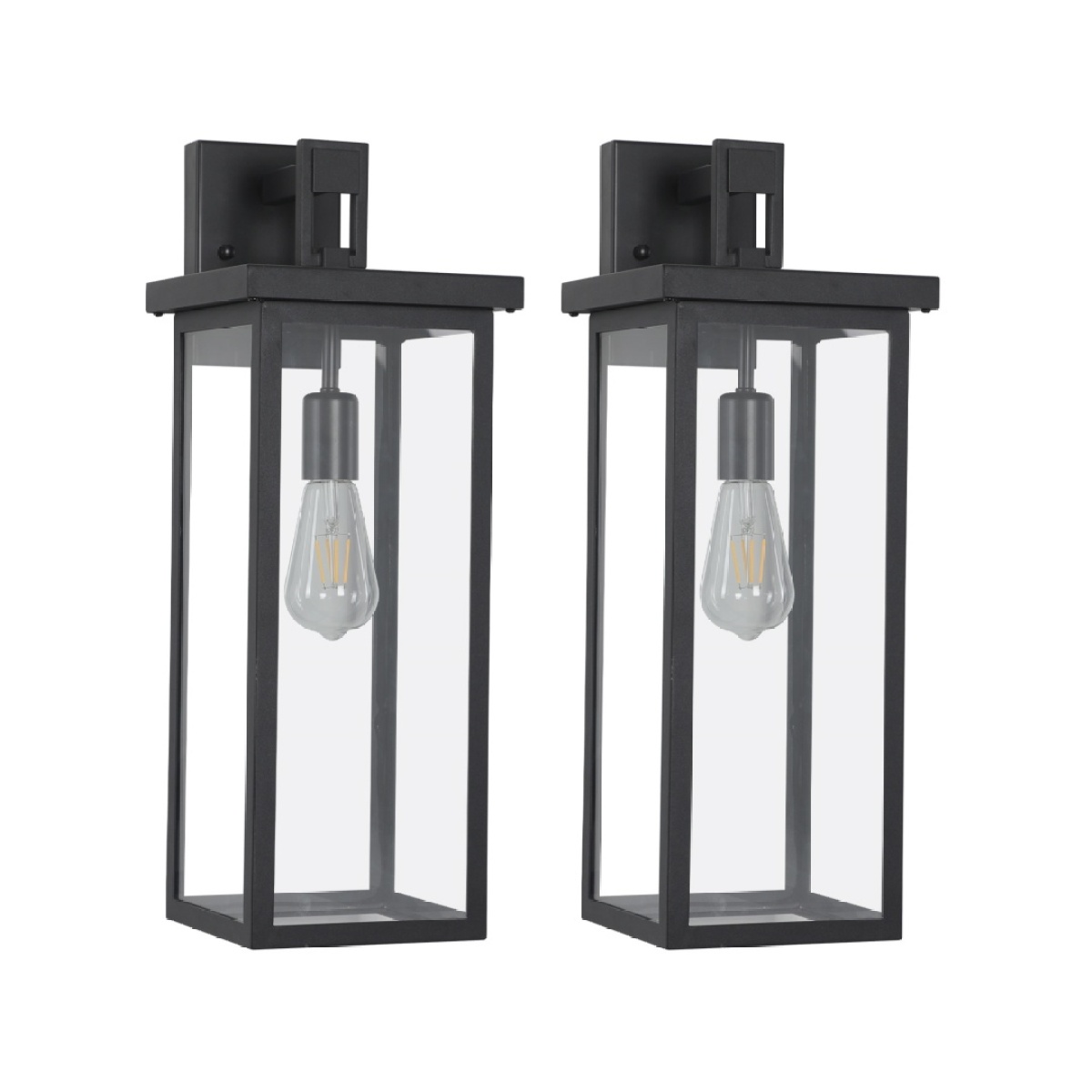 20 H Set Of 2 Modern Outdoor Wall Lanterns With Black Metal Frame And Clear Glass, Weatherproof Wall Sconces For Porch, Garage, Or Entryway Lighting, E26 Bulb Compatible No Bulbs
